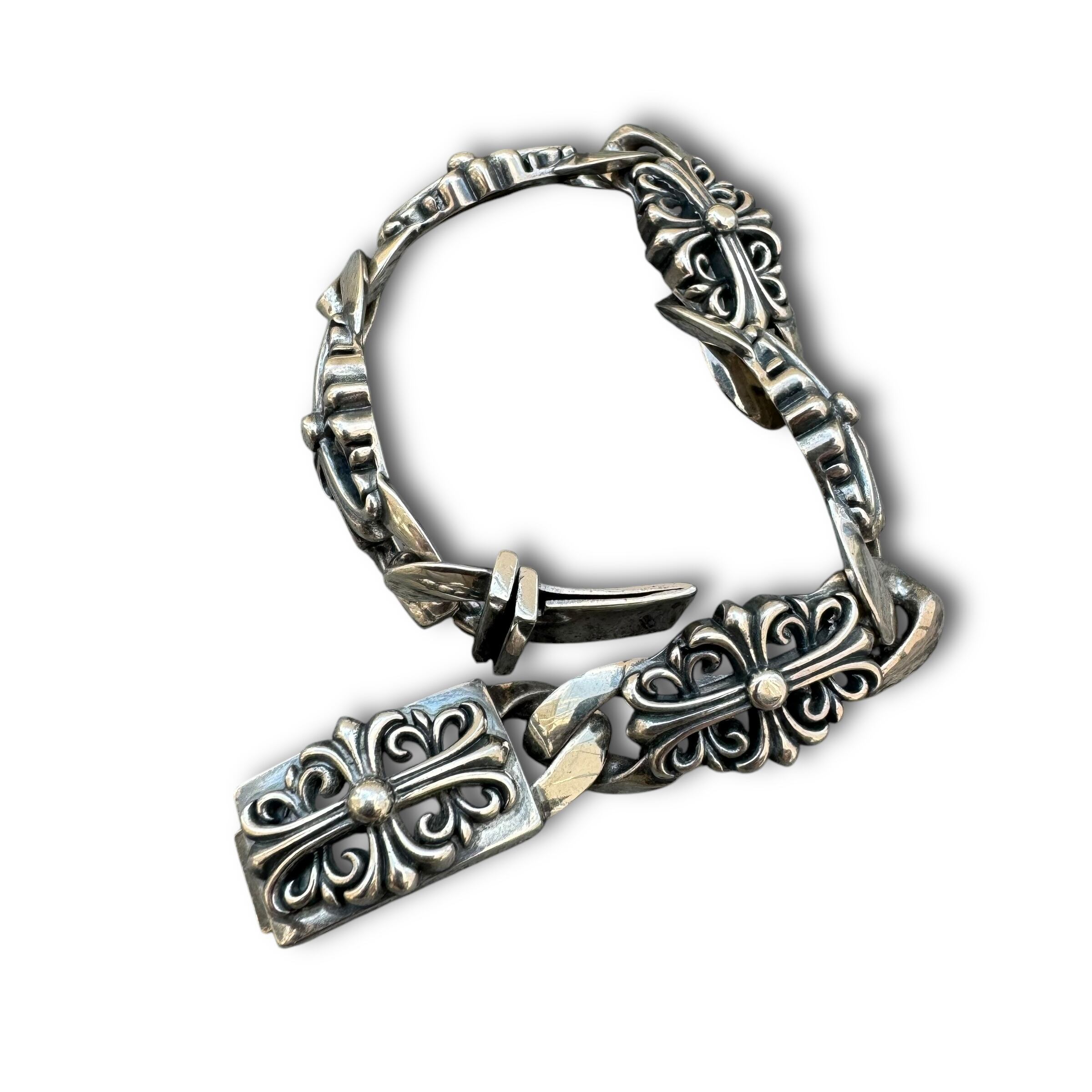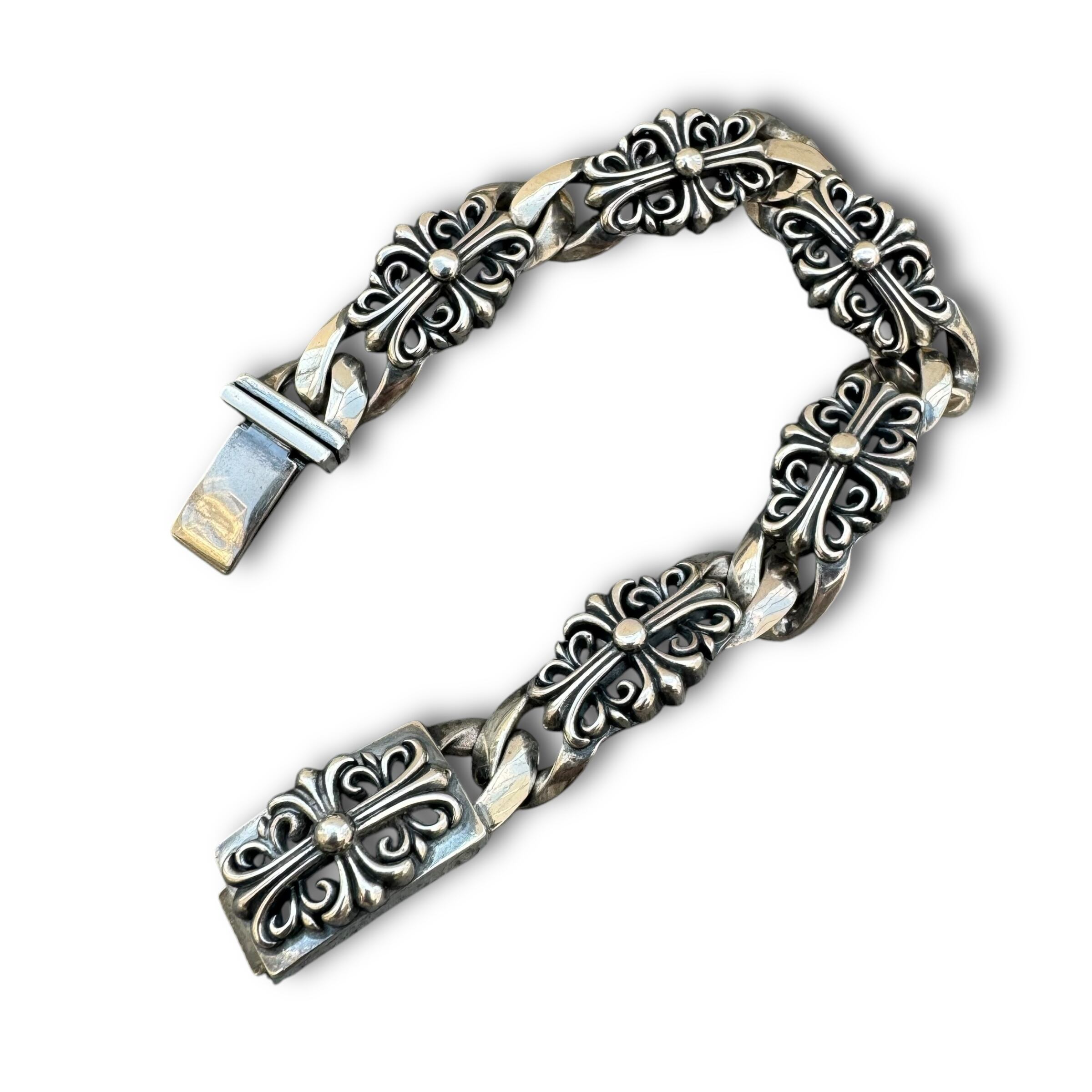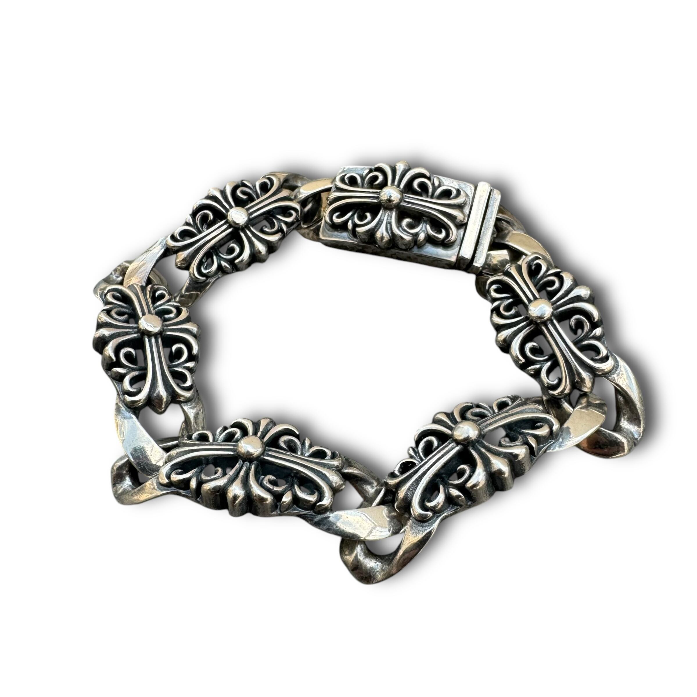 大きめなフローラルクロスモチーフが連なるデザインシルバーブレスレット✨✨