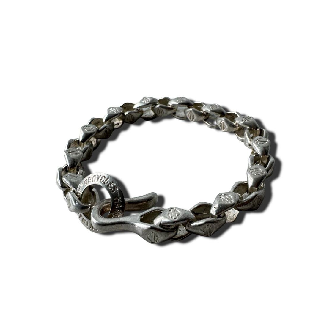 ハーレーロゴのシルエットを刻印したコマが連なるデザインブレスレット!!