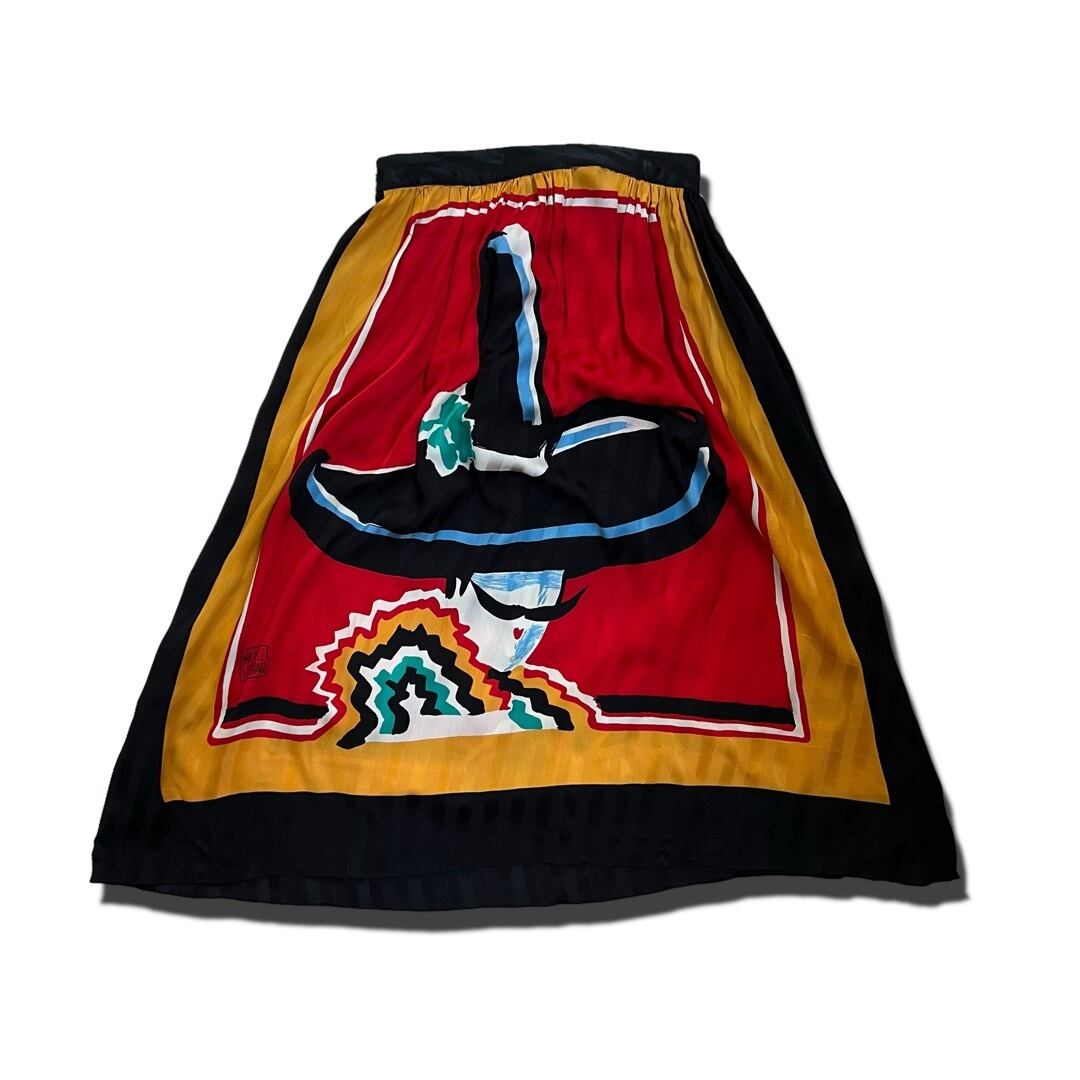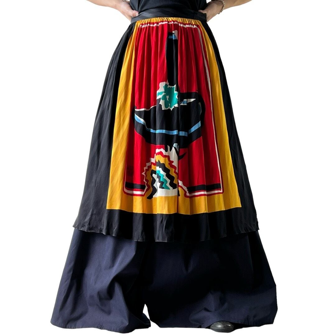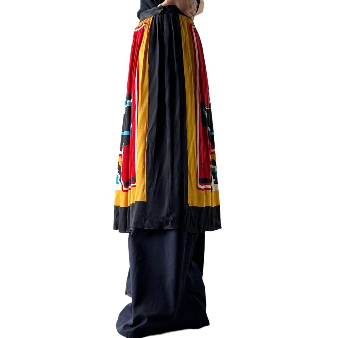 【VOLLBRACHToo】"MICHAELE VOLLBRACH" Art pattern silk pleats skirt