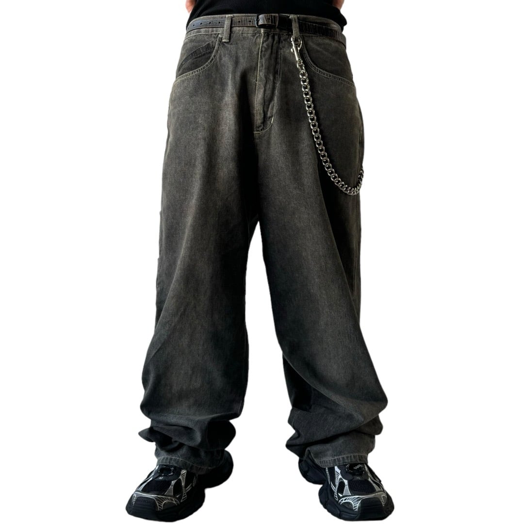 グッドフェードぶっかま子なデザインブラックワイドバギーデニムパンツ‼️