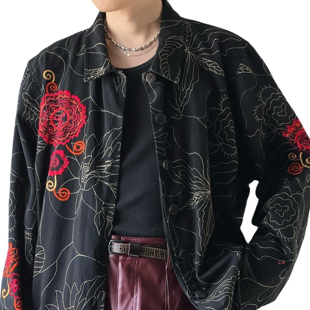 チェーン刺繍と普通の刺繍を使い分けた花柄パターンの素晴らしいデザイン性⤴︎⤴︎