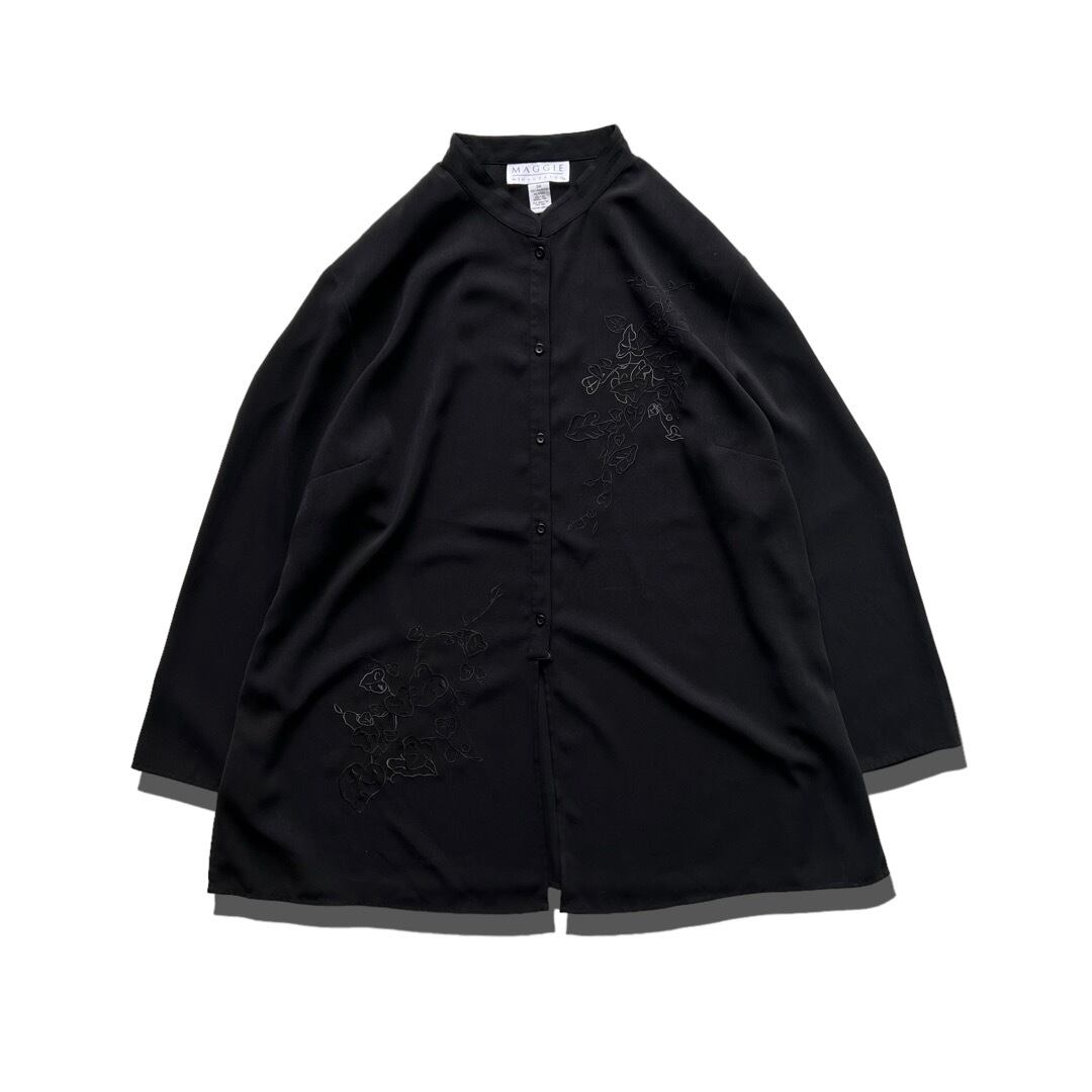 【MAGGIE】Leaf embroidery pattern slit Design shirt