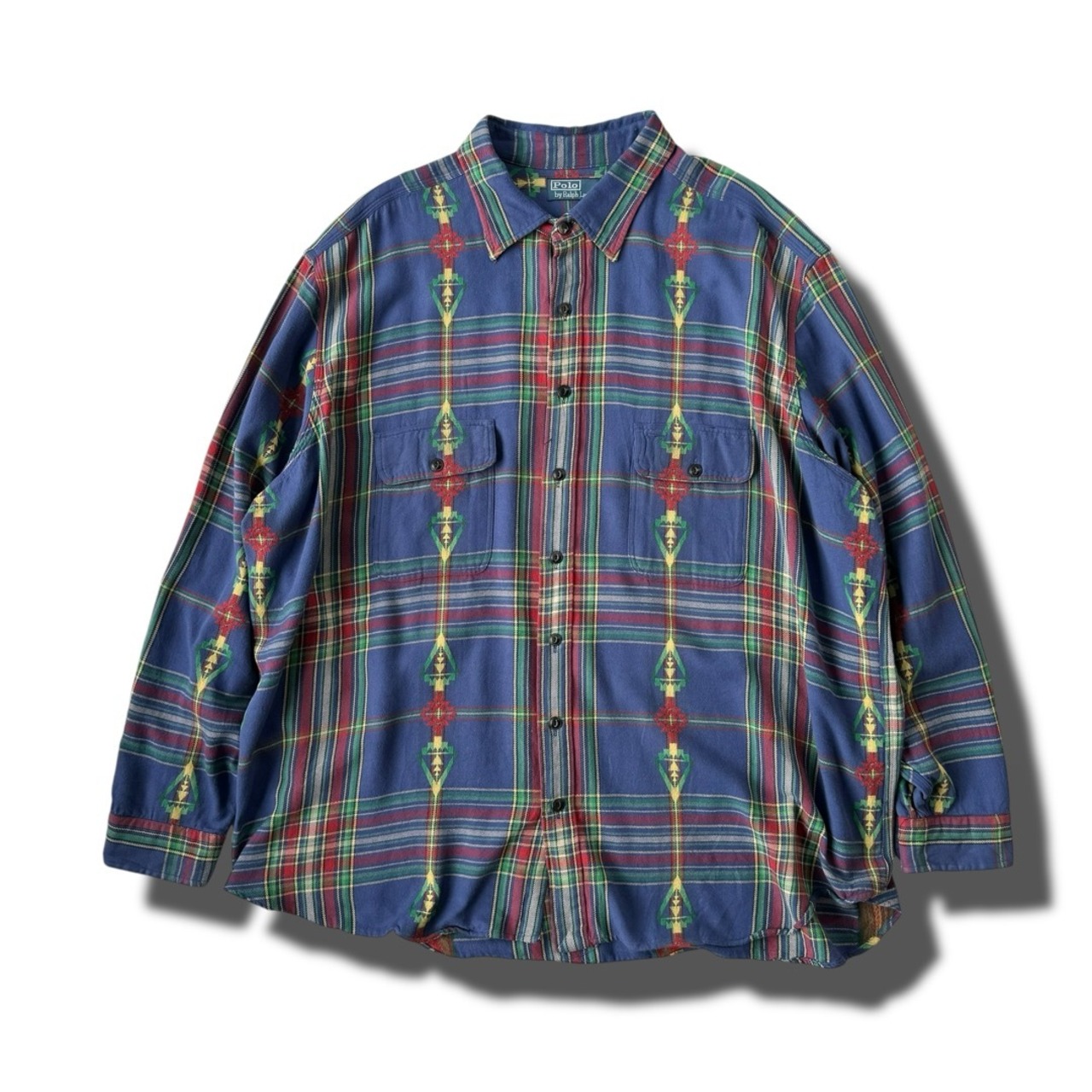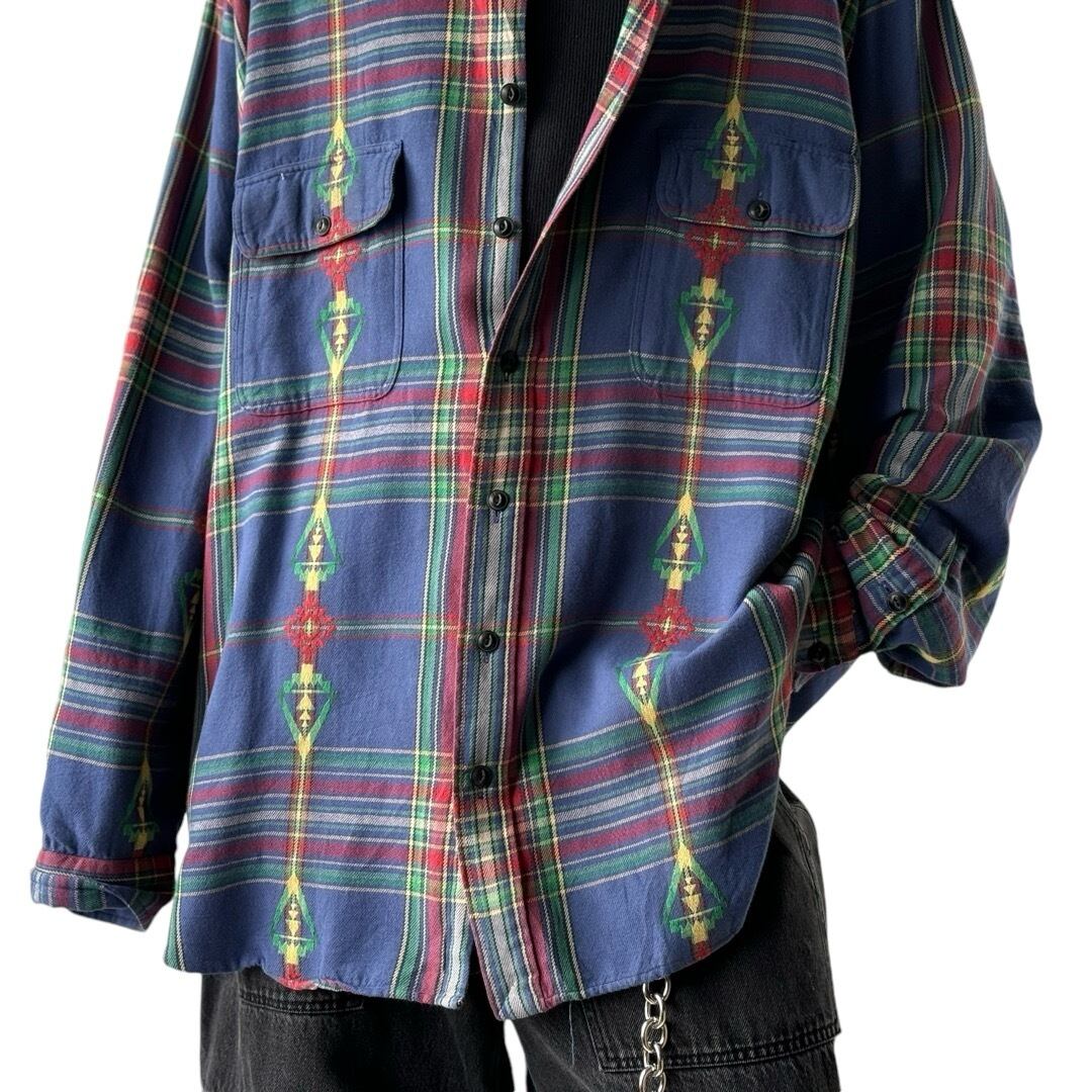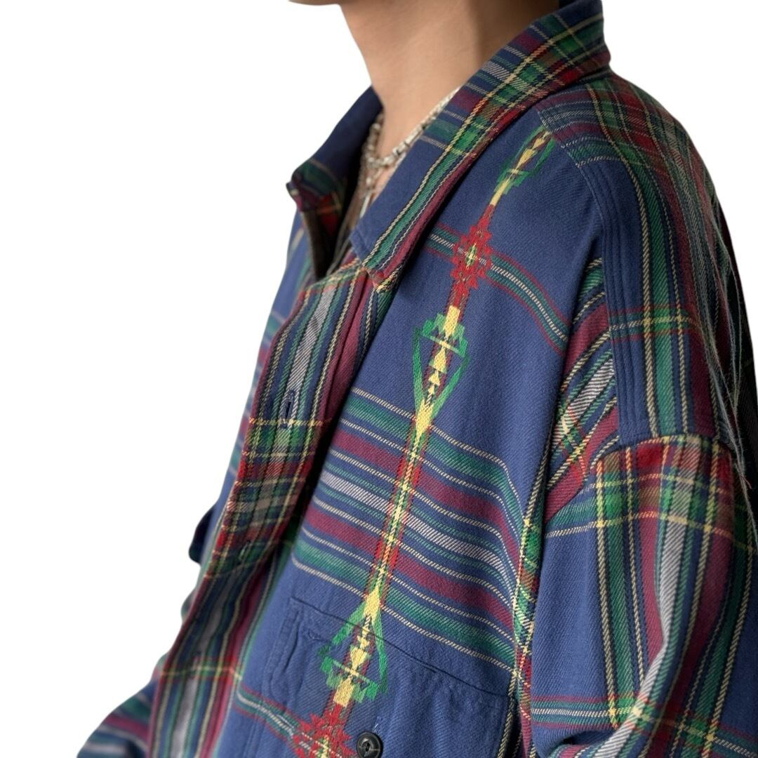 フランネルでブルーベースタータンチェックにネイティブパターンを混ぜたラルフローレンらしいヴィンテージのアップデートが魅力の一枚.