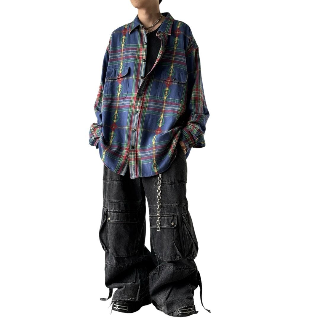 ♾️90's Polo by Ralph Lauren♾️ native mix pattern check shirt size 3XB
