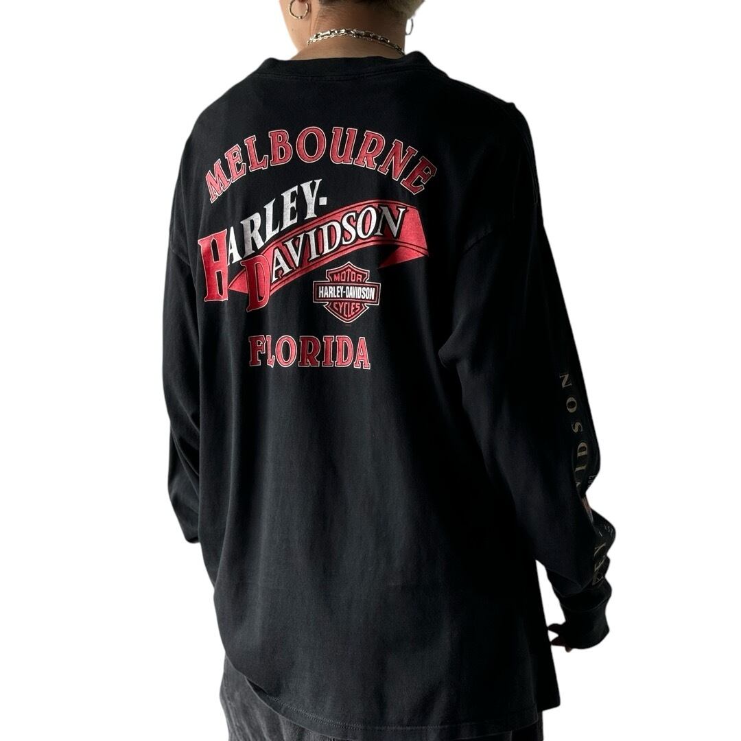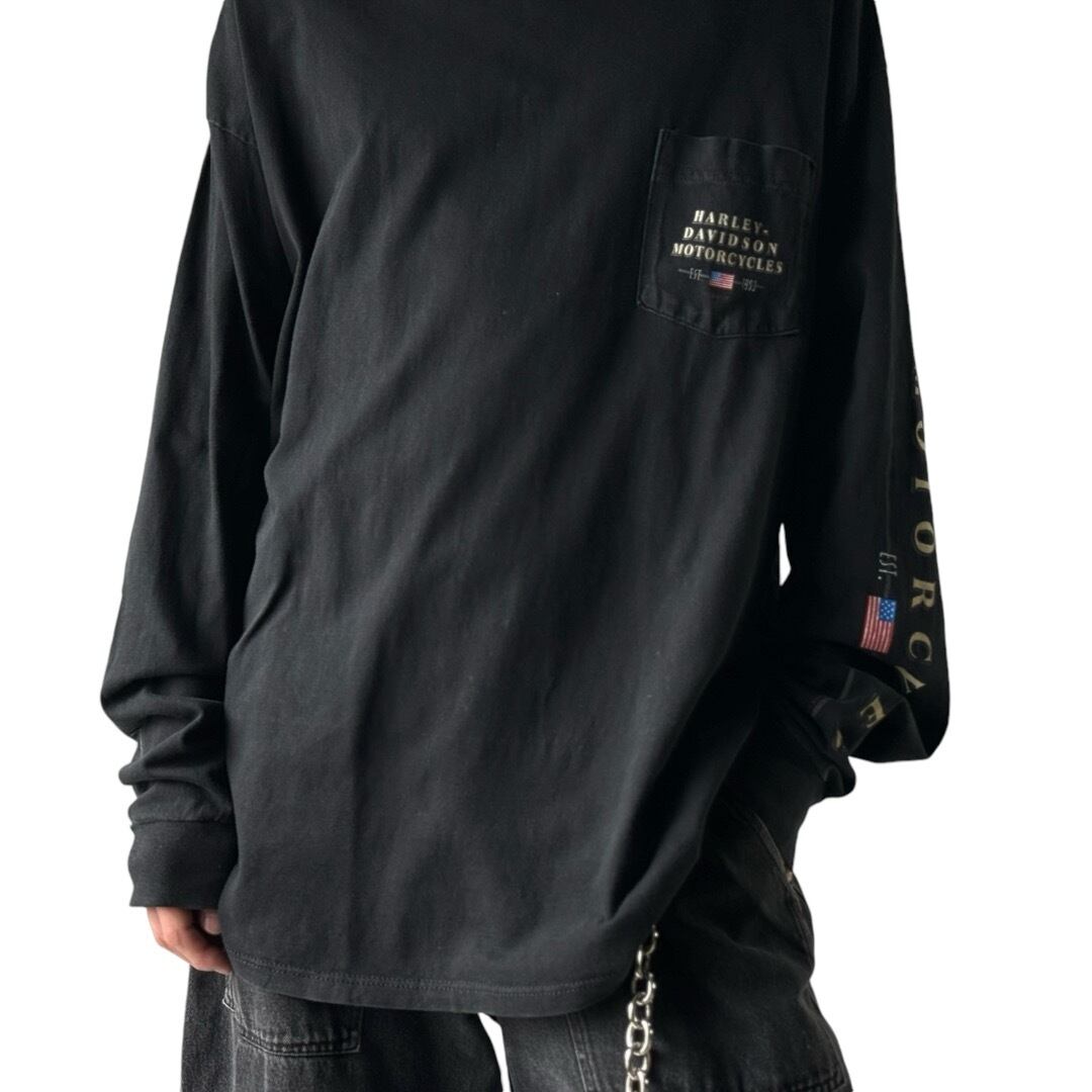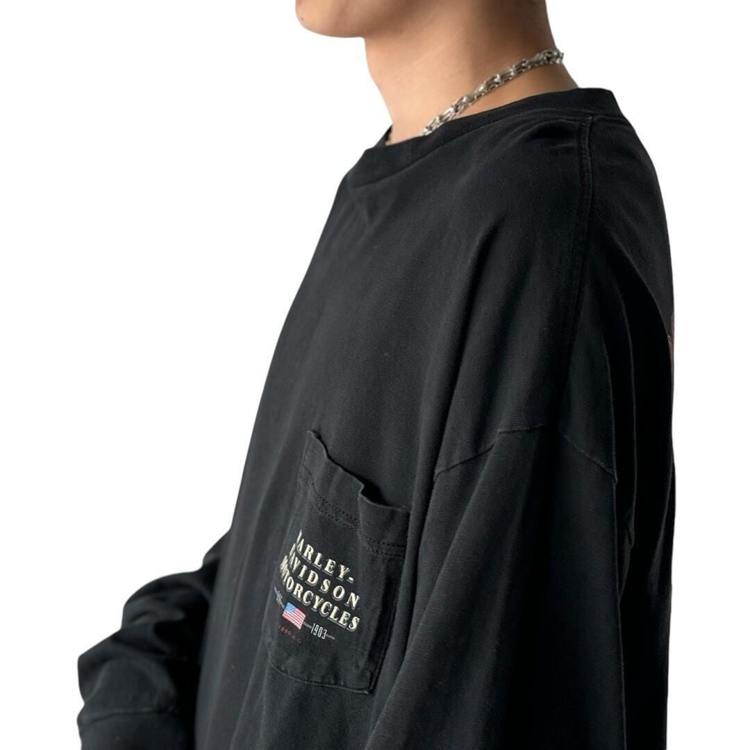 ♾90's HARLEY-DAVIDSON♾ ©️1999 design printed long sleeve pocket Tee MADE IN U.S.A size XXL