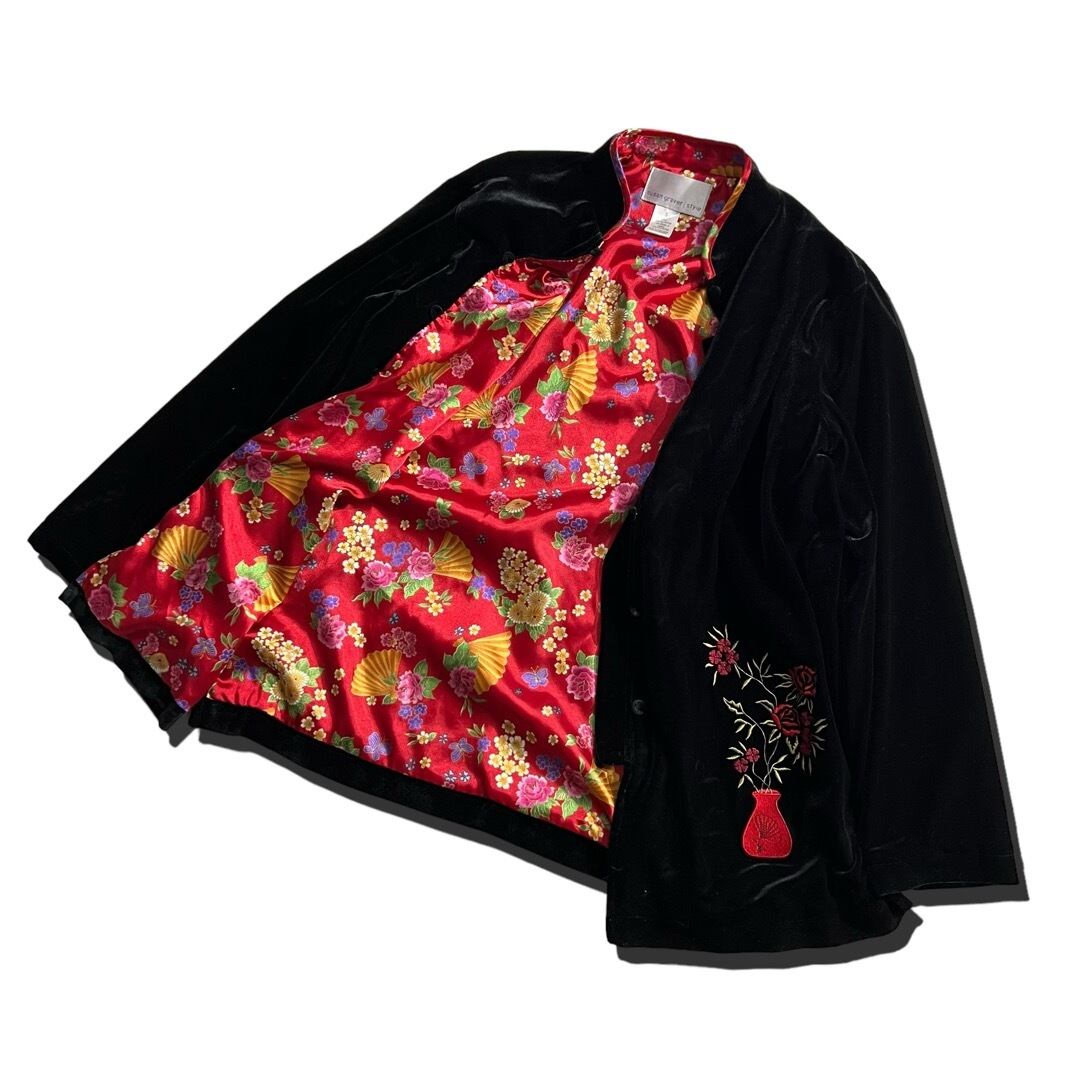 高級感溢れるベロアのチャイナジャケットにフロント裾には花の刺繍✨