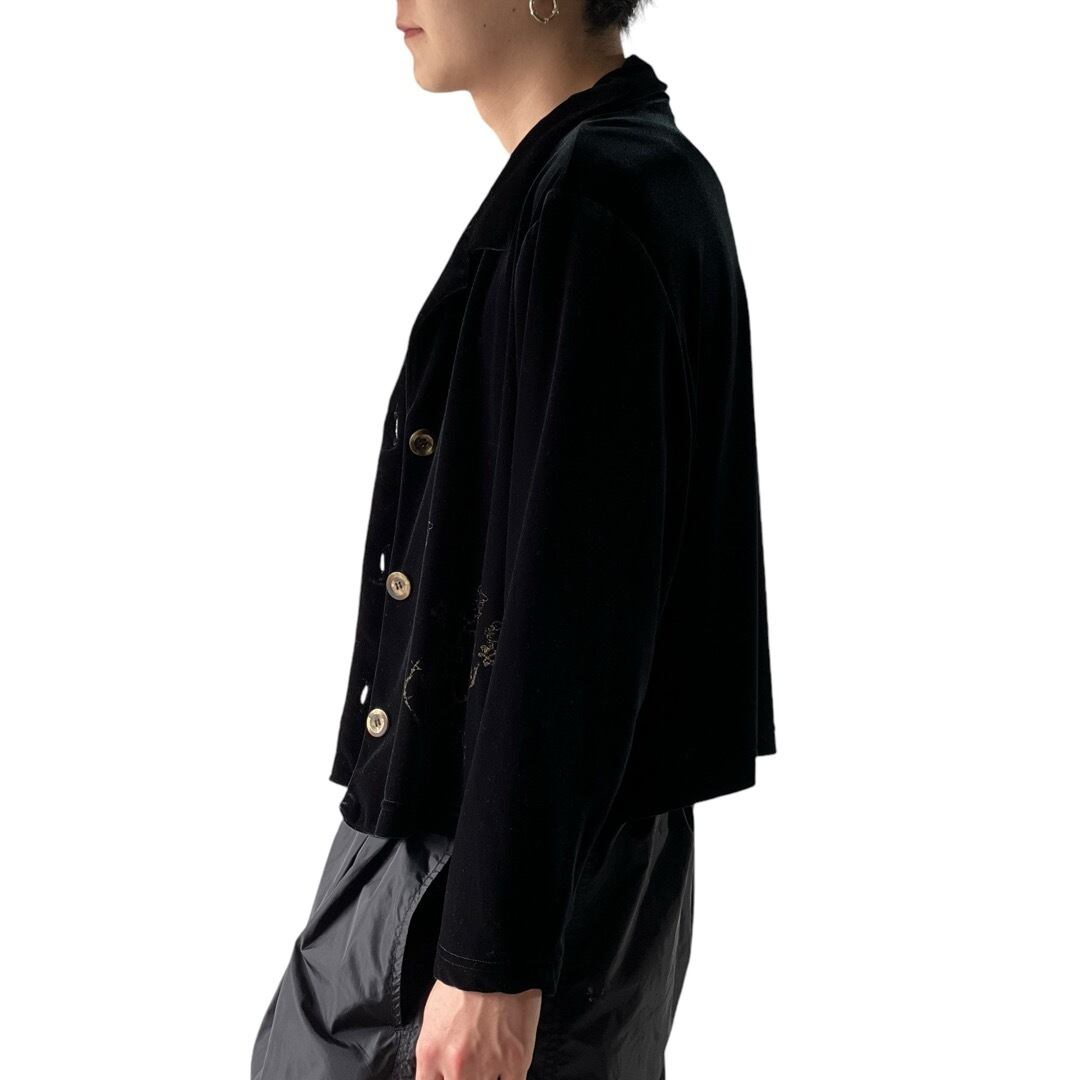 Flower print velvet short jacket