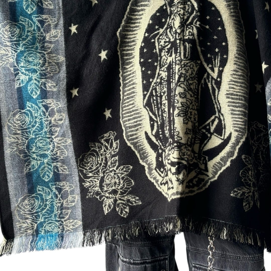 オーバーデザインのポンチョなのでレイヤードも仕放題ですし、コーデのアクセントとしてばっちりキマります◎