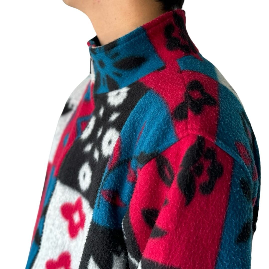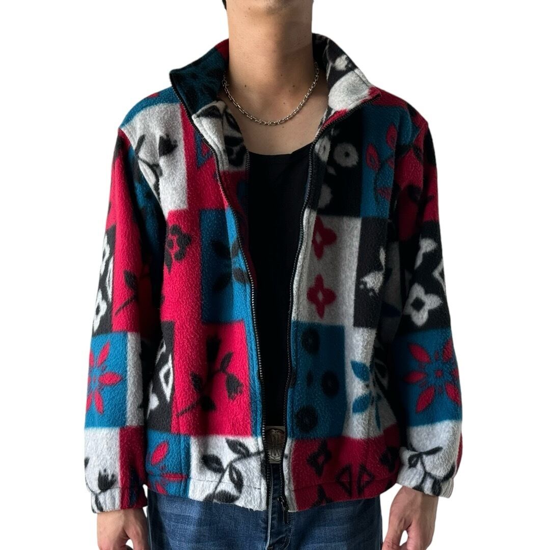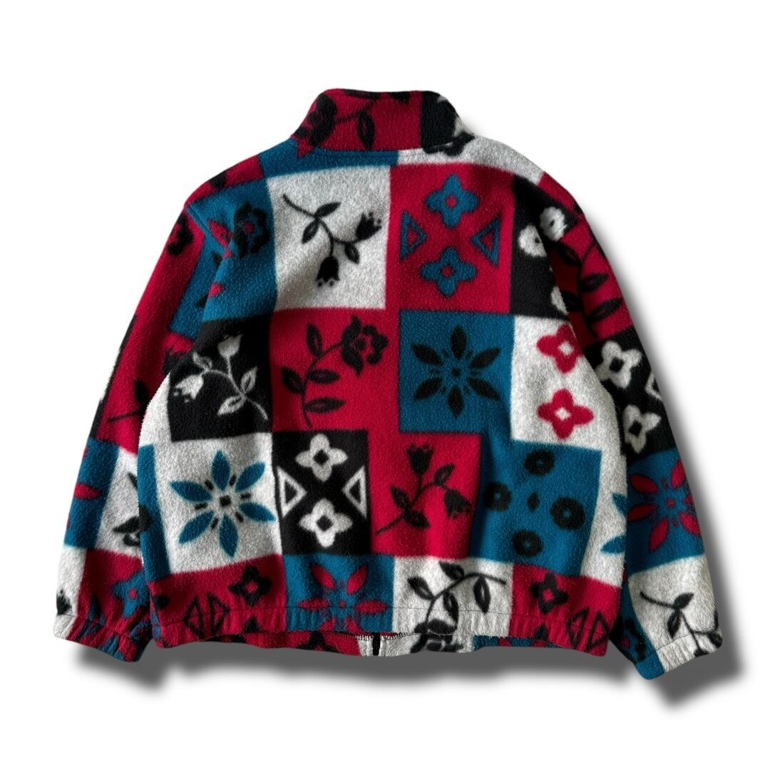 可愛らしいフラワーモチーフのパネルチェックデザインが目を引くフリースジャケット‼️