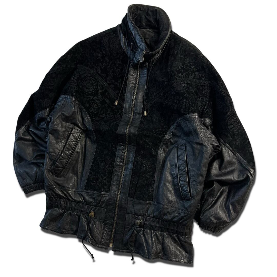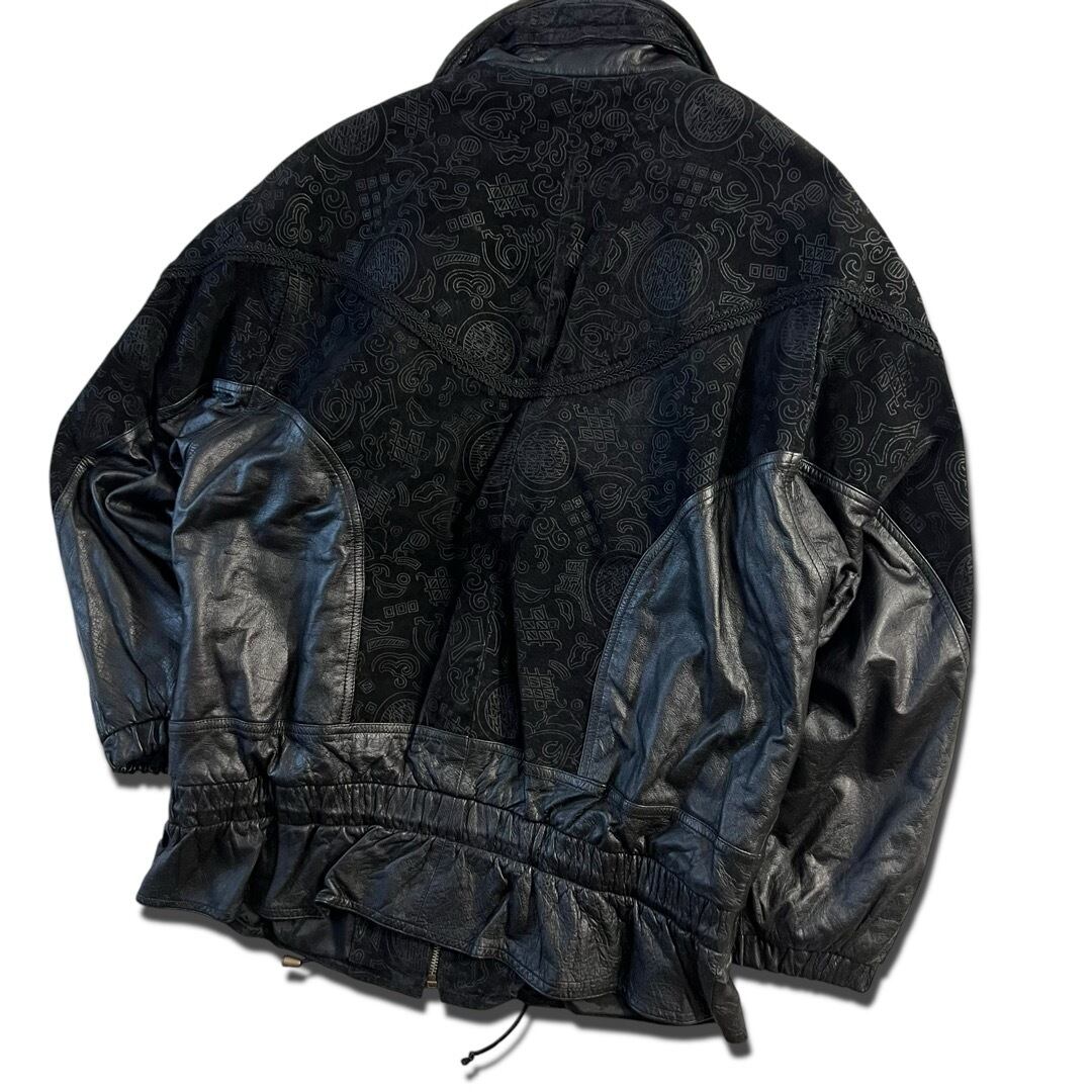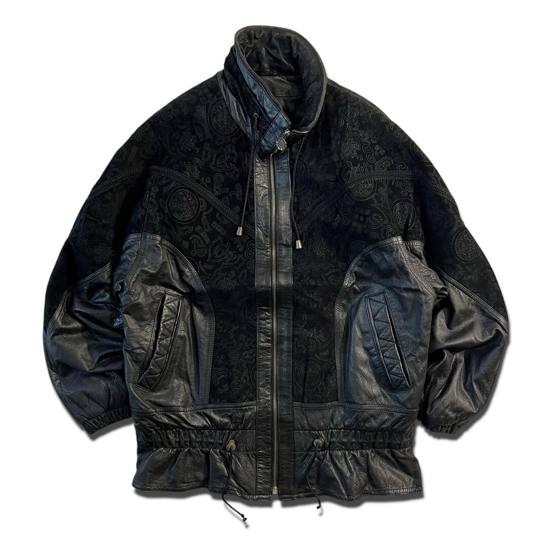 【John Weitz】 Vintage Mulch pattern All Leather Blouson