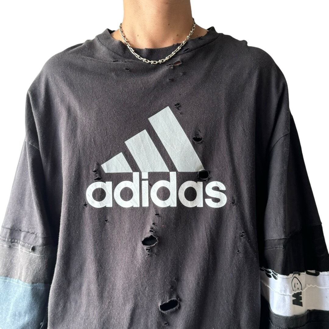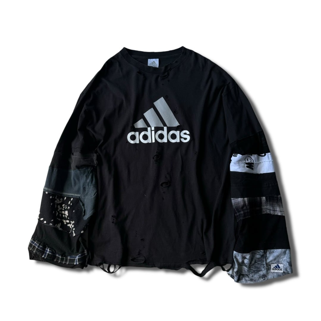 贅沢にadidasのボディを使用した両袖を再構築したリメイクデザインロングスリーブtee‼️