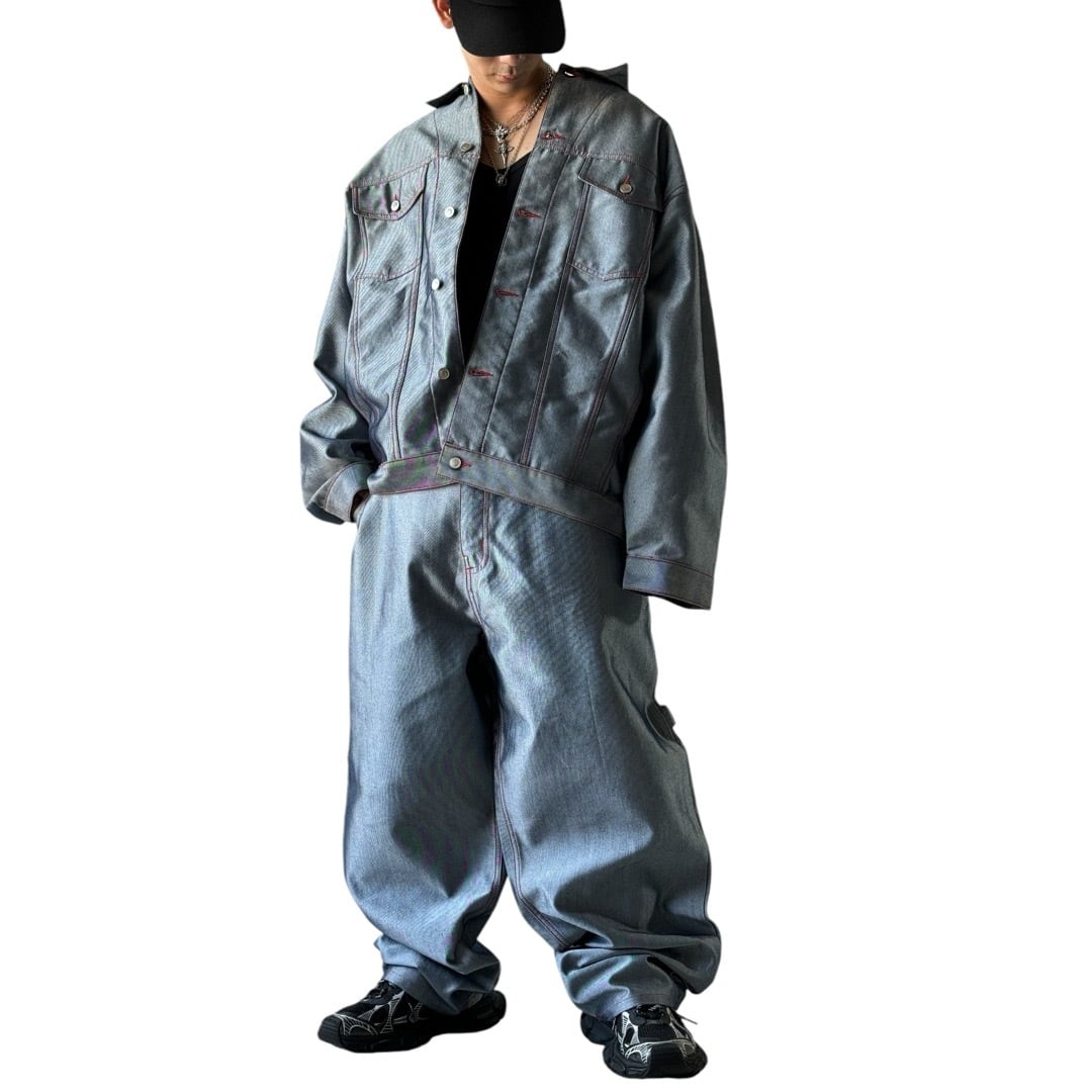 ️️️スペシャルな存在感放つシャイニーシルバーのデザインデニムセットアップ!!!