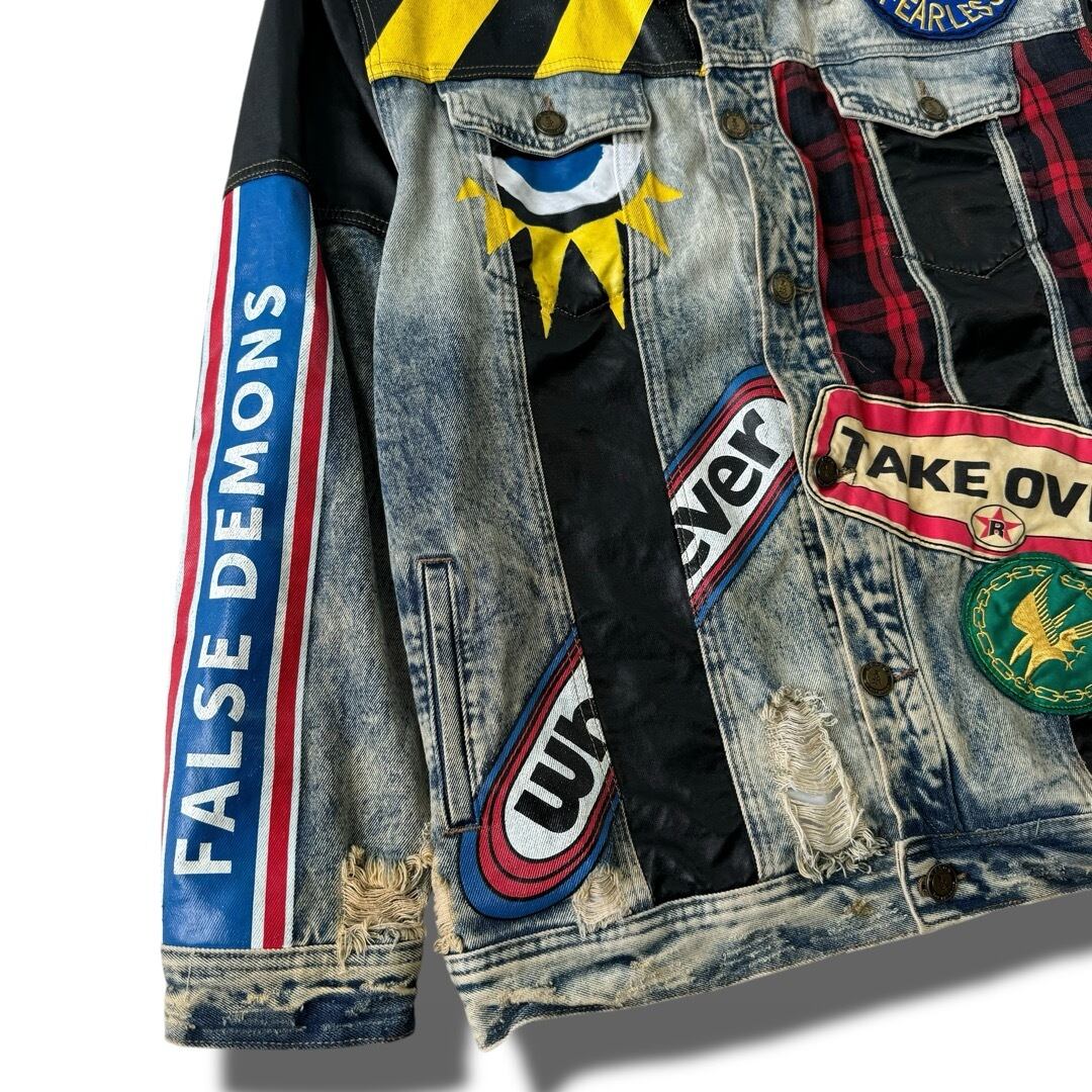 ♾REASON♾ mulch fabric design crush over sized denim tracker jacket sizeXXL