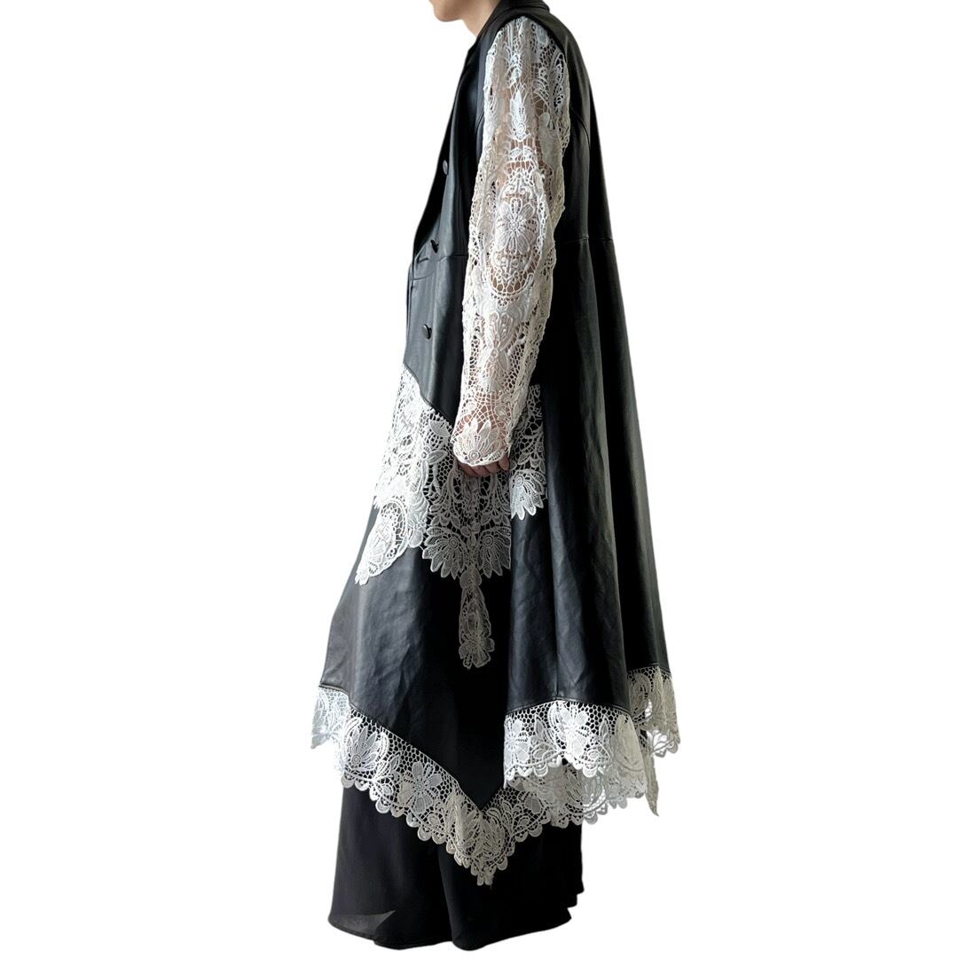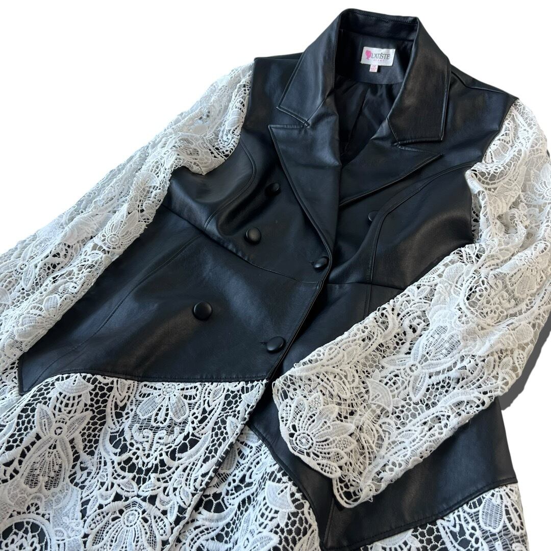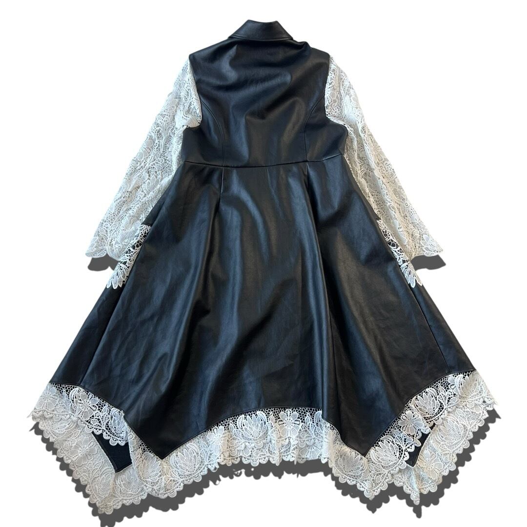 【L'ATISTE BYAMY】Lace docking swiching PU Leather design coat