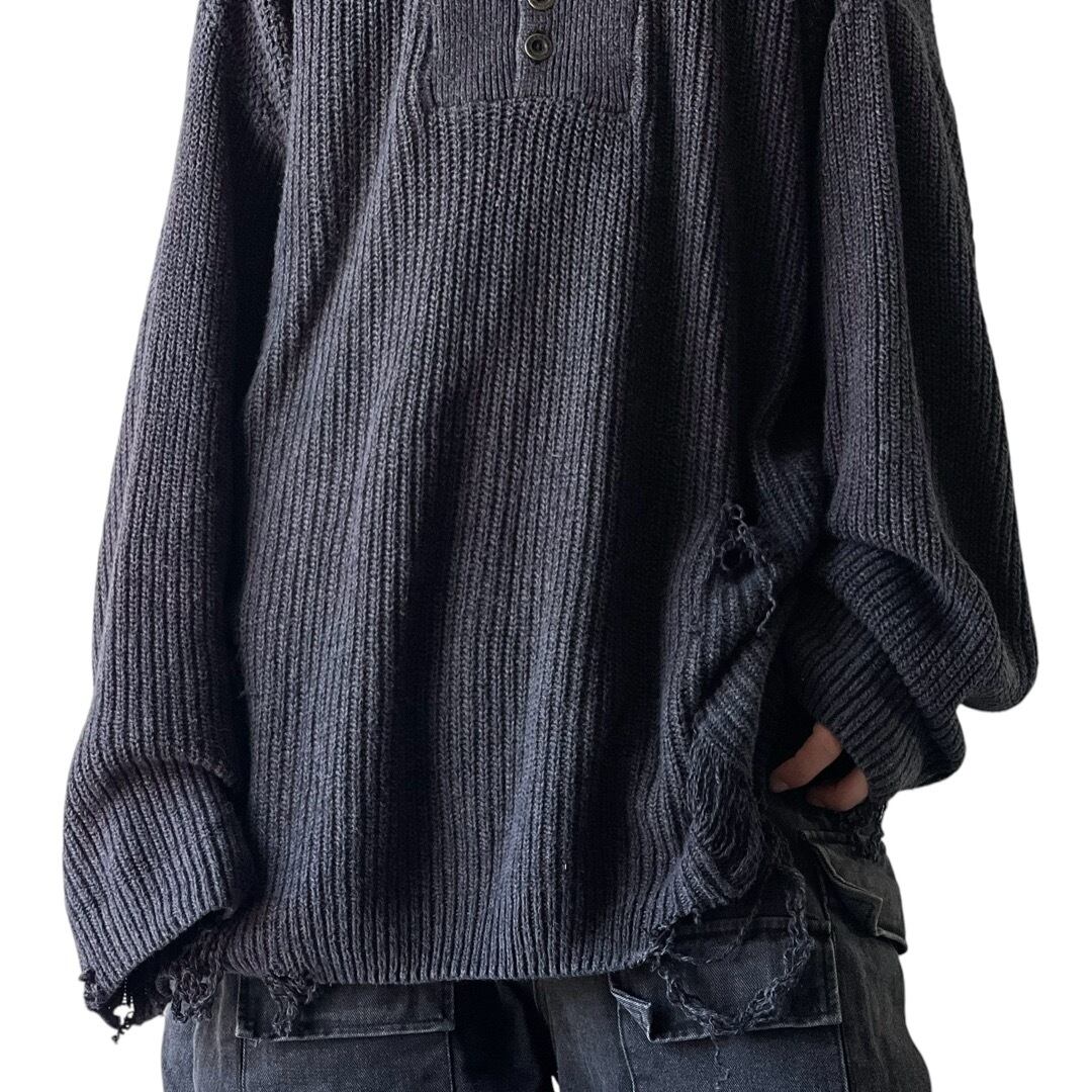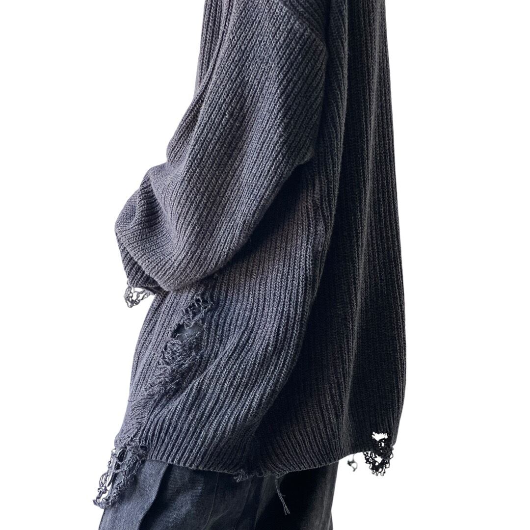 ザックリコットンの極上ニットにハードめなダメージ加工を施したオーバーサイズニット❗️