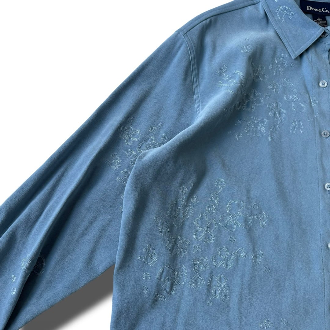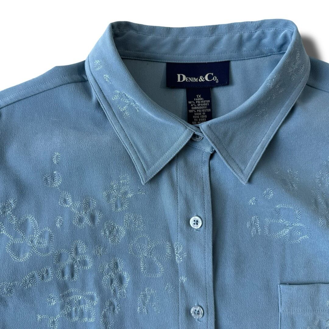 ♾DENIM&Co.♾ flower motif stitch design smooth fabric L/S shirt size1X