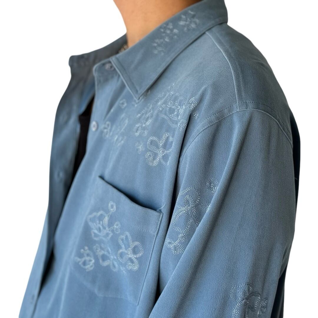 flower motif stitch design smooth fabric L/S shirt