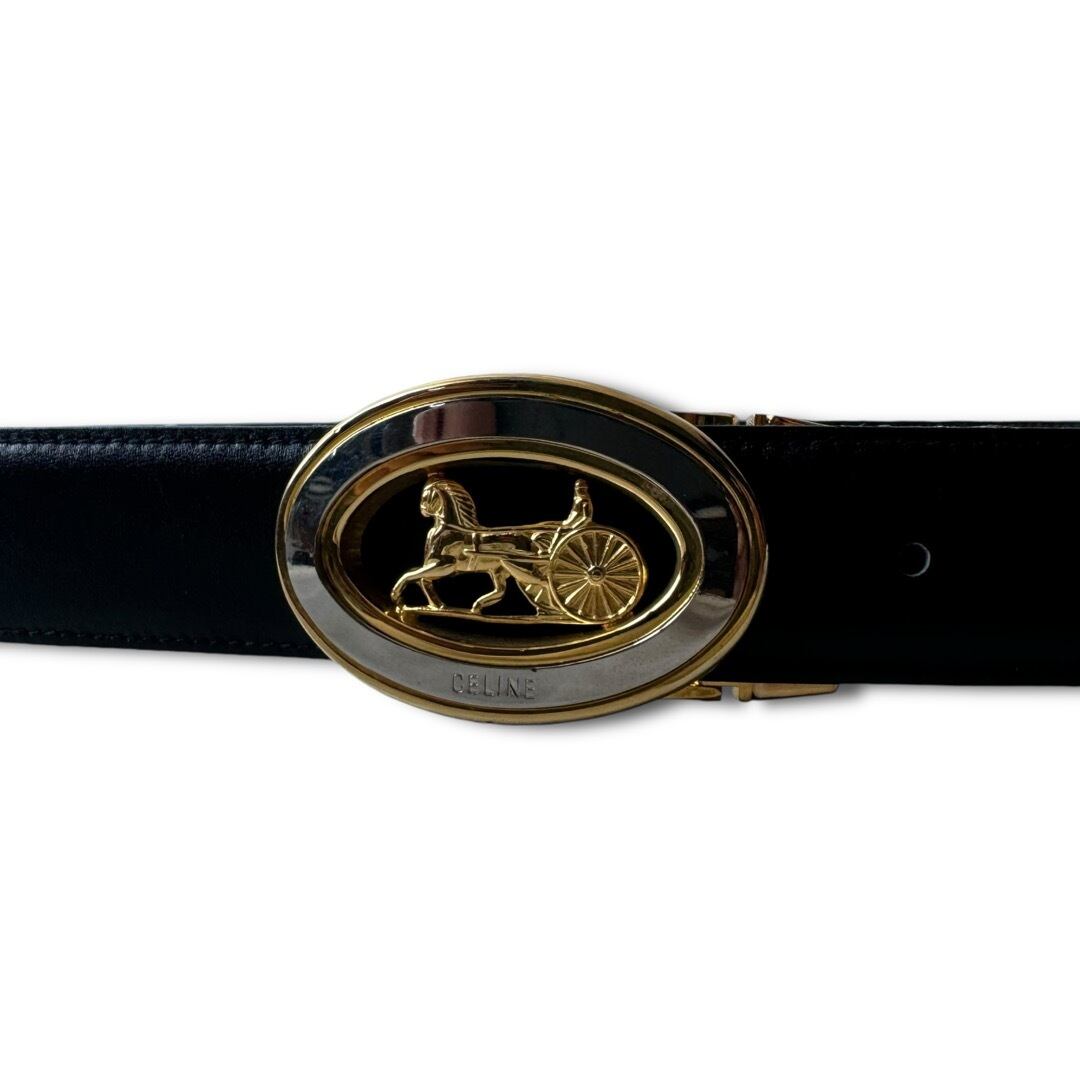 ♾CELINE♾ vintage horse carriage motif buckle double face design leather belt MADE IN ITALY