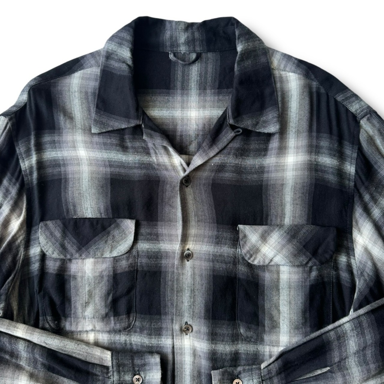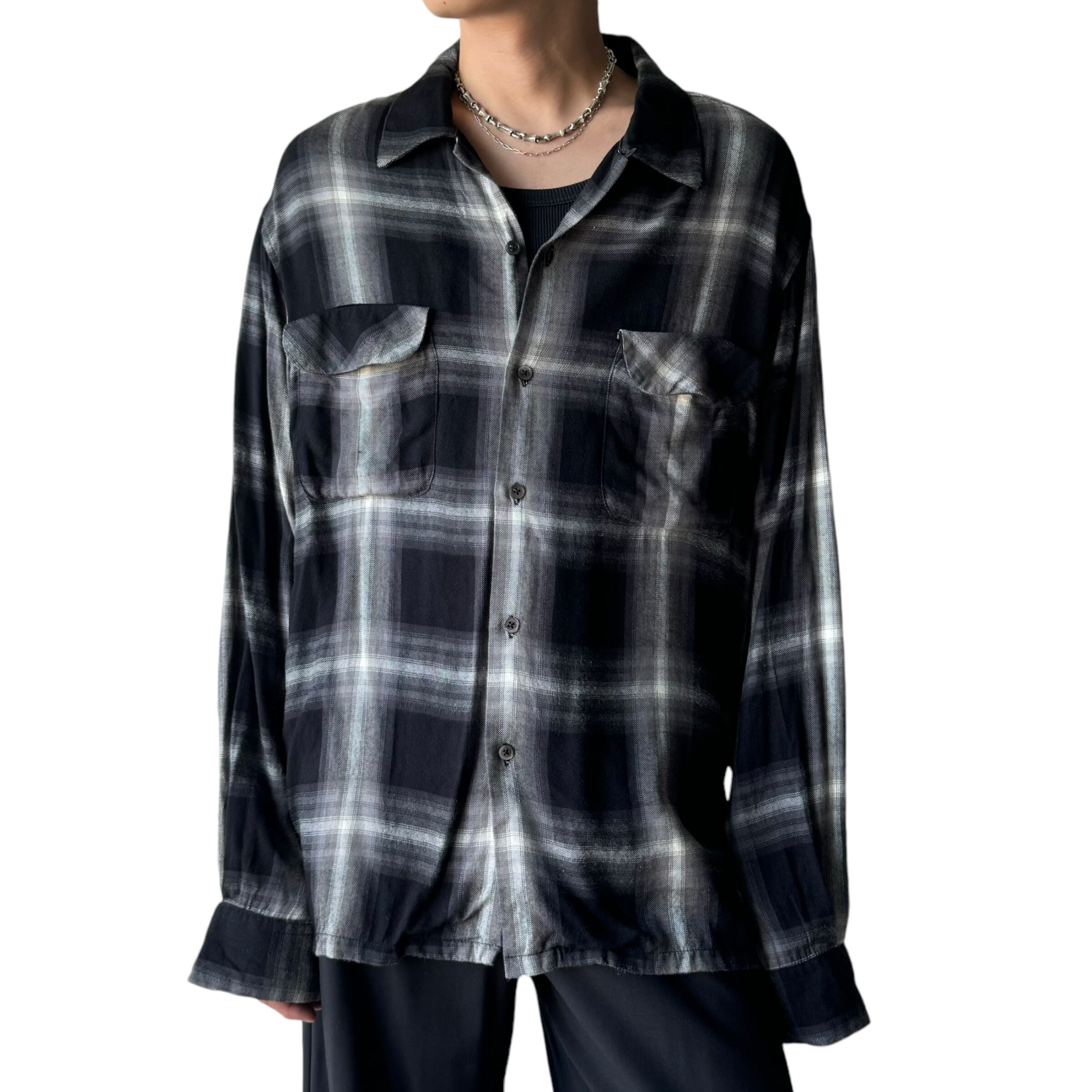 ♾design used♾ ombre check open collar rayon shirt