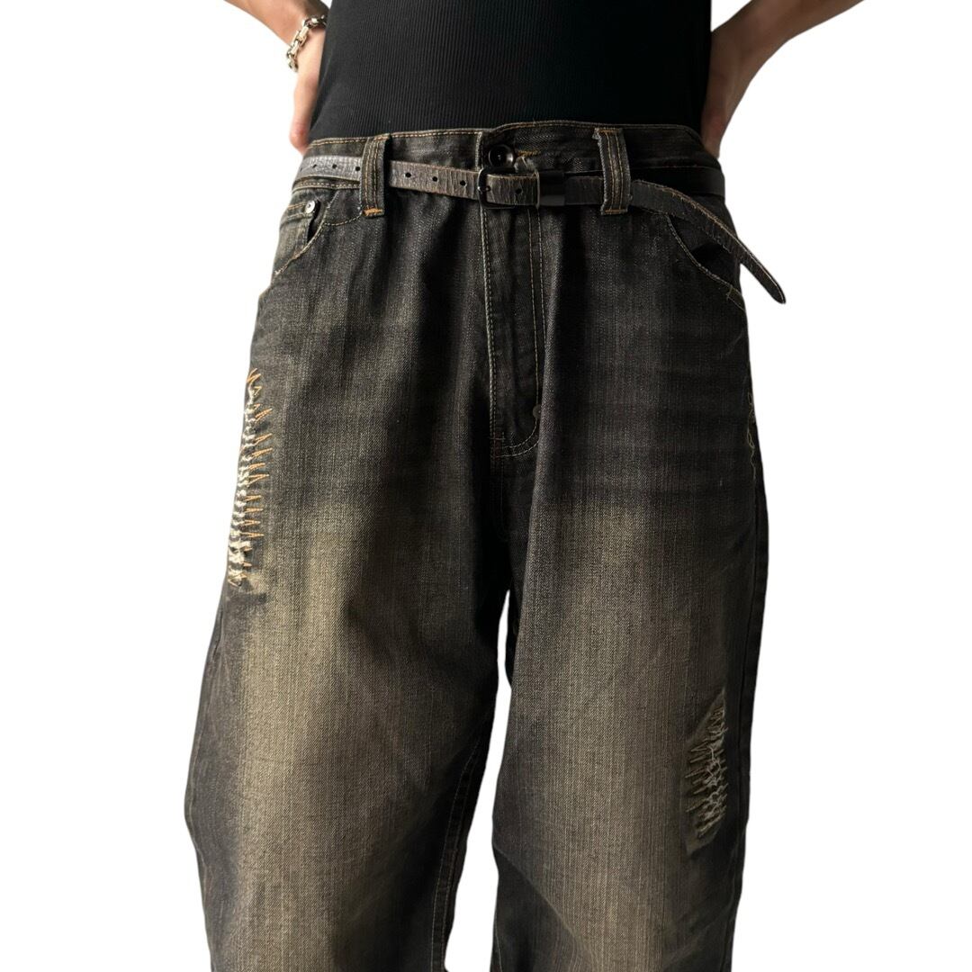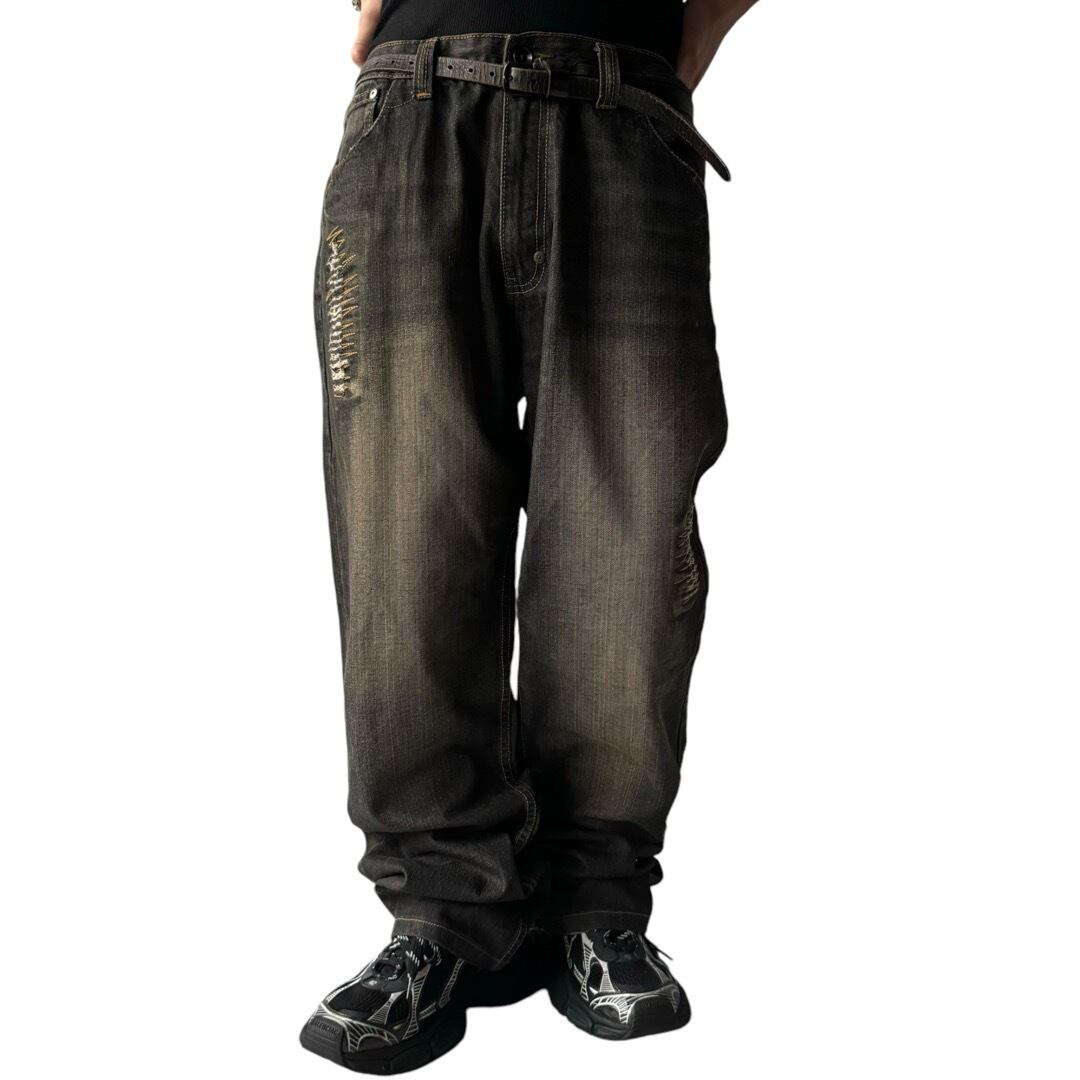 ステッチデザインがさり気ないアクセントのブラックデニムの色味がイカすワイドデニムパンツ✨