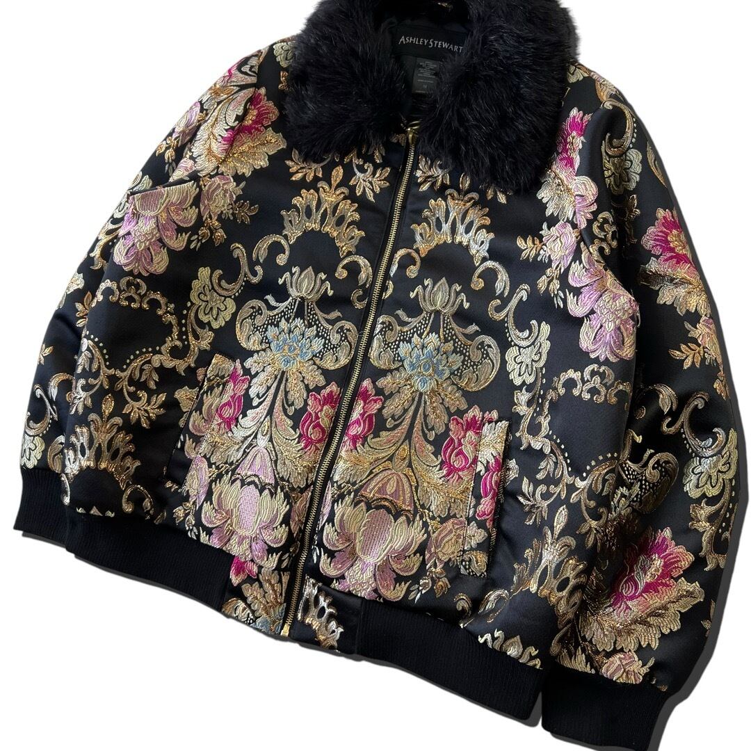 【ASHLEY STEWART】Woven Embroidery Fabric flight detail jacket