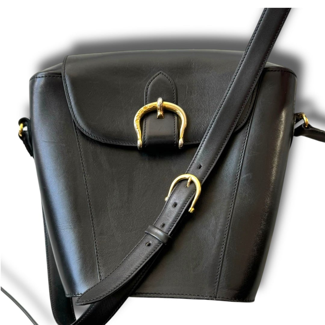 おモードなシルエットとゴールドの金具がアクセントになったデザインショルダーレザーバッグ‼️