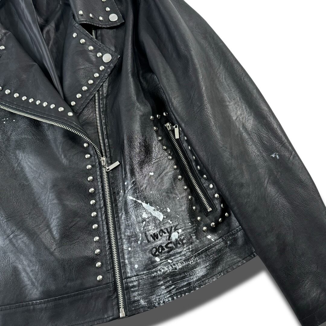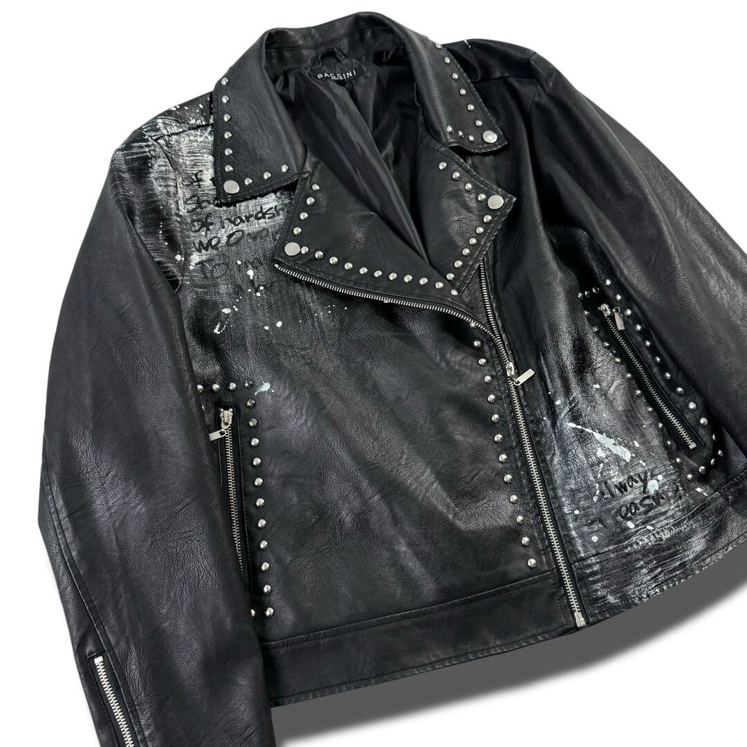 ♾BACCINI♾ hand painted studs design double riders pvc leather jacket sizeXL