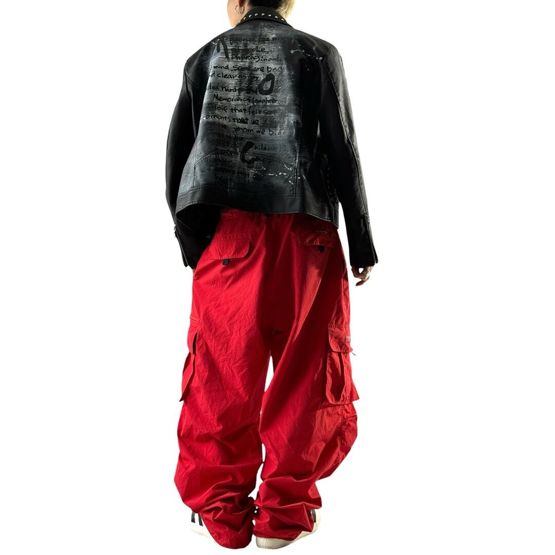 ハンドペイントが施された無二でアーティスティックなデザインが目を引くダブルライダースpvcレザージャケット‼️