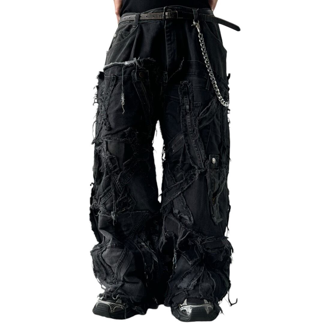 ♾REMAKE DESIGN USED♾ reconstruction custom mega wide black denim pants