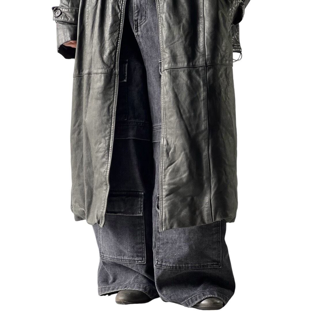 【South Wind】Smoked Leather Long detail design coat