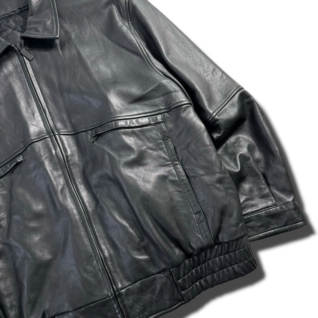 【ROUNDTREE & YORKE】 front pocket gimmick design Leather drizzler jacket