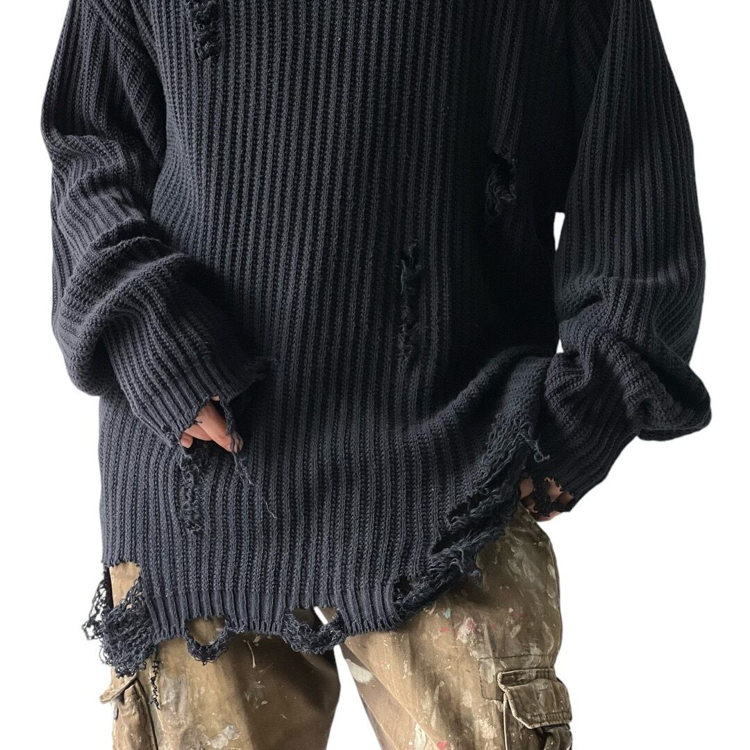 被って決まるグランジ感最高なダメージニット⤴︎⤴︎