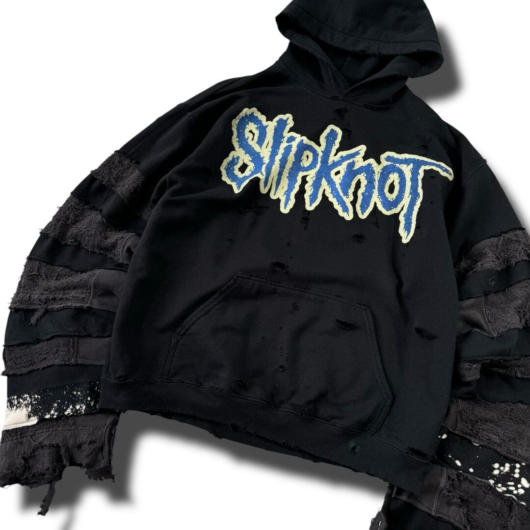 SlipKnoTのインパクト抜群なグラフィックのカスタムにダメージ加工を施したフーディー‼️