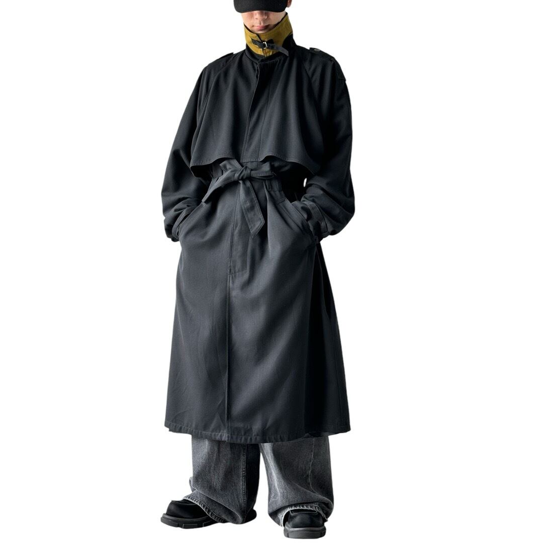 襟元のマスタード切り替えのかっこよさが最高峰な漆黒ロングコート✨