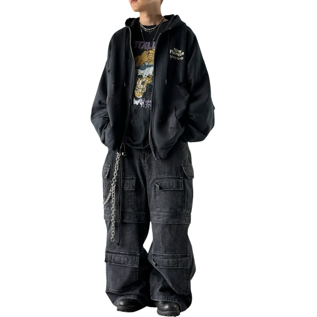飛び散ったペイントデザインにクラッシュしたボディがグランジ感ありで最高なデザインフーディ❤️