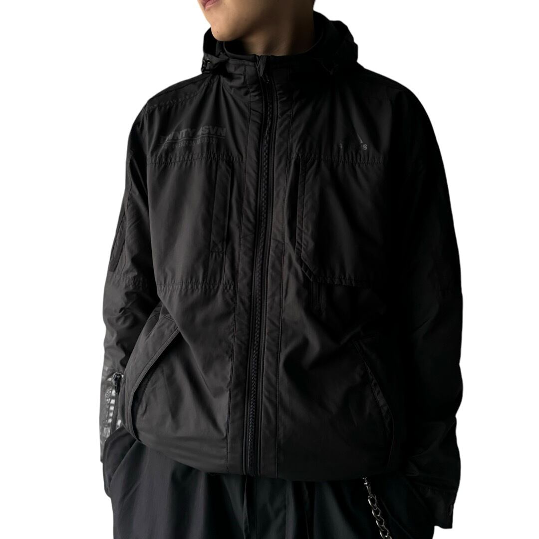 フード付きでジップアップ、ナイロンな生地感がクール‼️