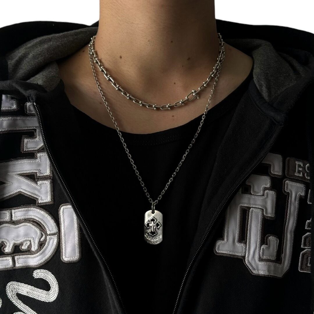 cross motif dogtag necklace -sv925-