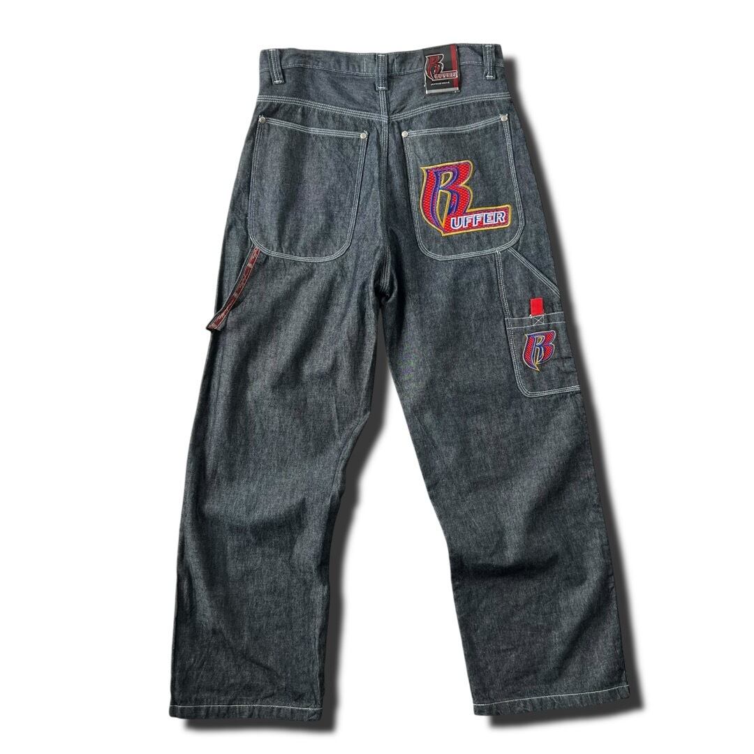 【RUFFER ACTIVE WEAR】"Back style Embroidery decoration,, stitch painter wide pants