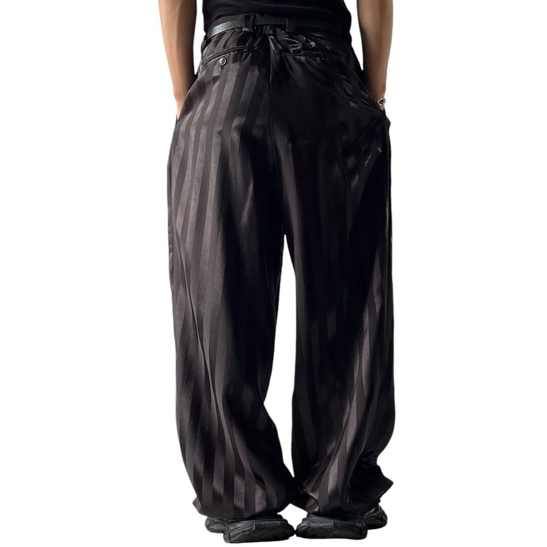 【Falcone】Shiny Stripe pattern Wide straight slacks