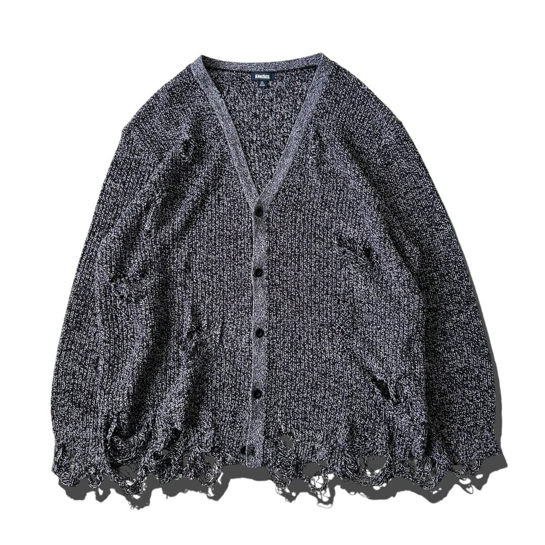 【KINGSIZE】 Oversize Distressed Design Knit cardigan / Melange Gray