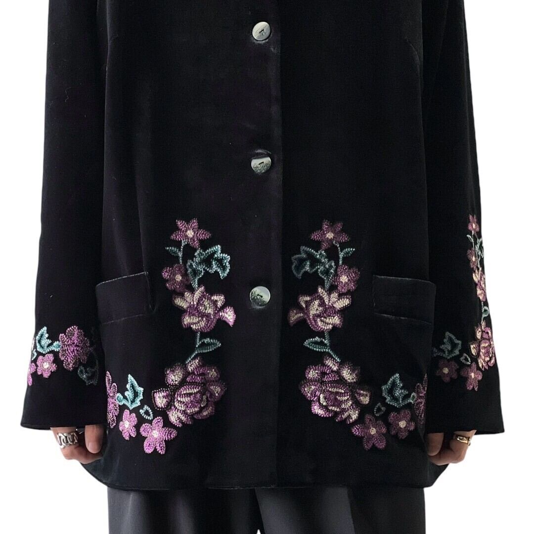 ベロア特有の光沢感でラグジュアリーさがたまらない刺繍ジャケット❗️ 高級感ハンパねー‼️