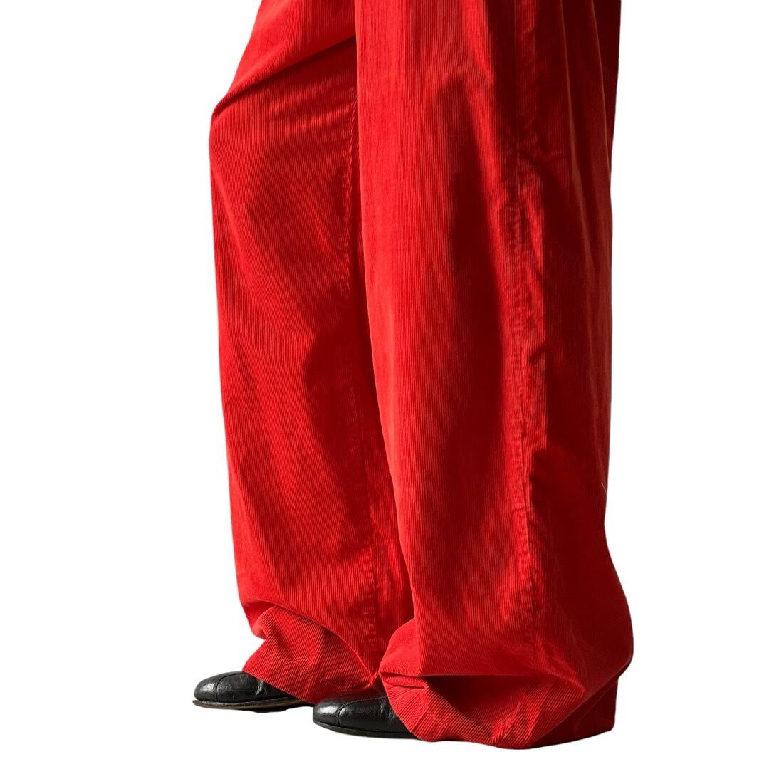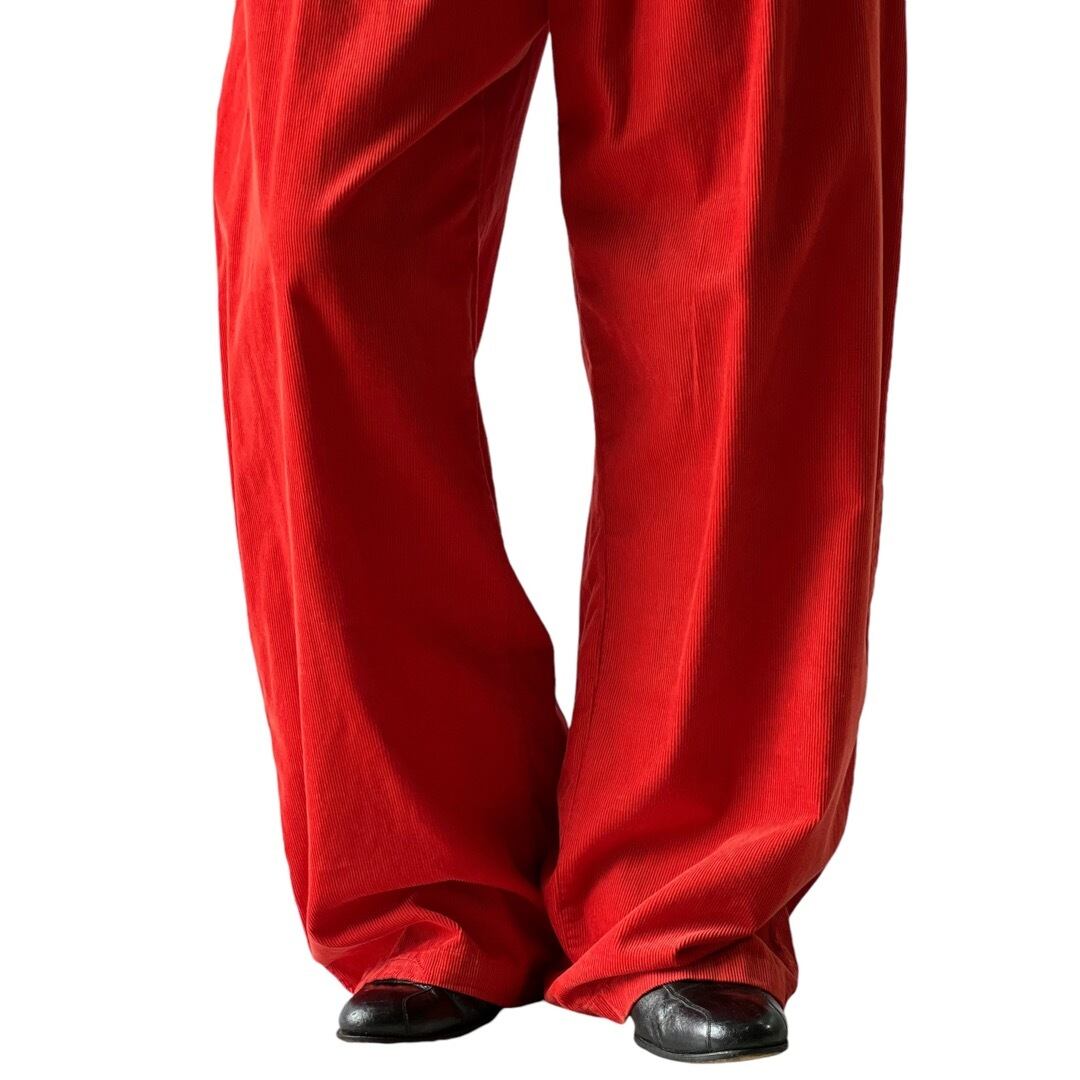 デザイナーズブランドのようなオレンジに染まったコーデュロイ生地でワイドスラックス‼️