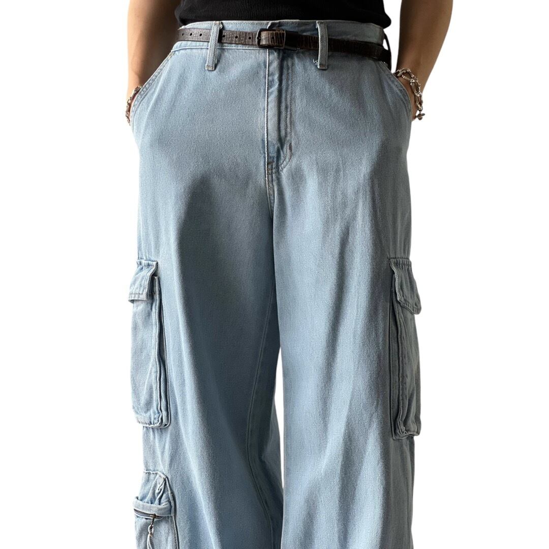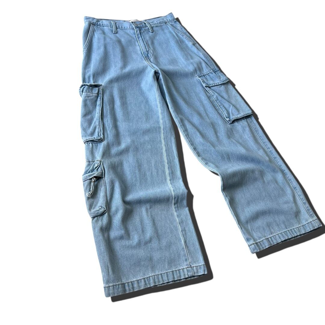 不均一に設置されたカーゴポケットも可愛らしくスタイリングでアクセントに☺️ 色味も薄めで最高にお洒落な一本です⭕️