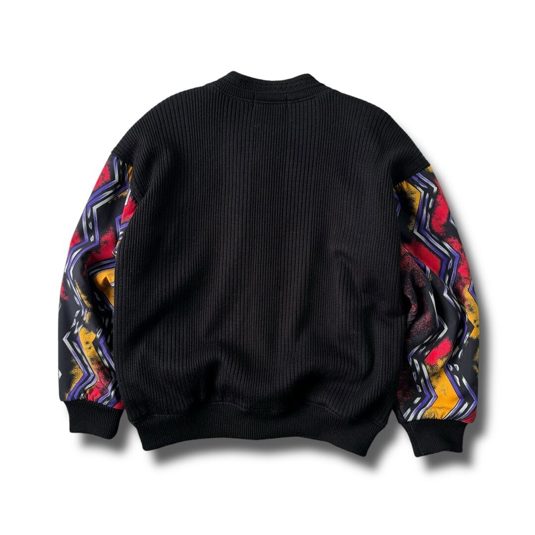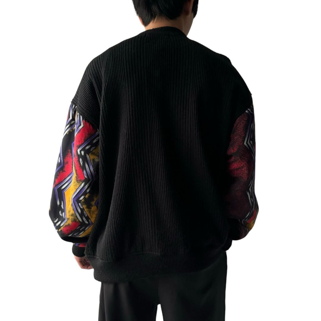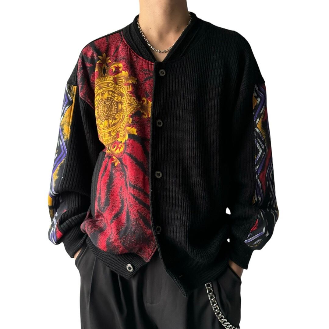 袖や身頃の半分をスカーフパターンに切り替えたデザインニットブルゾン!!