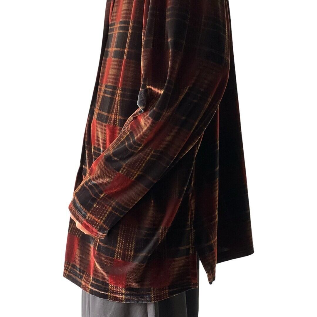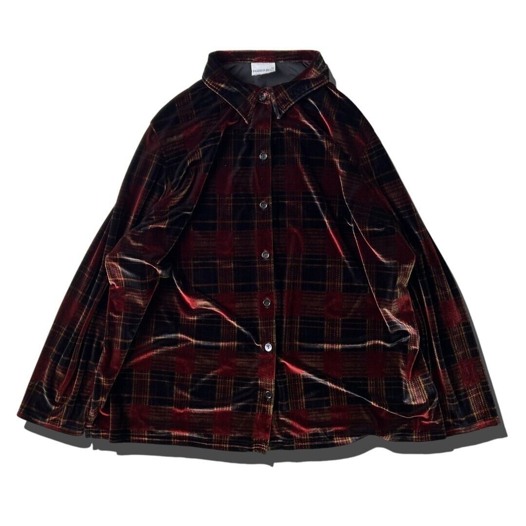 【FASHION BUG】Check pattern velours shirt