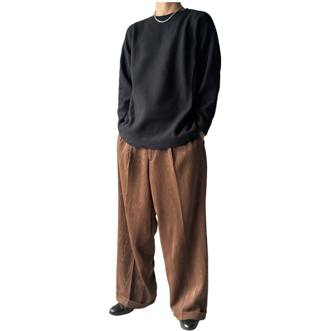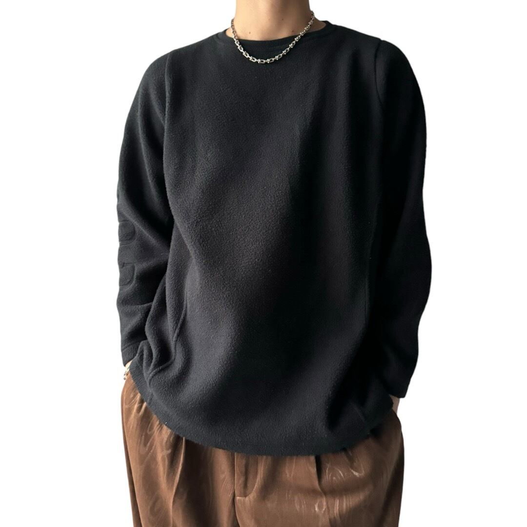 袖にデカデカと同系色で施されたロゴ刺繍がグッドなデザインフリーススウェット‼️