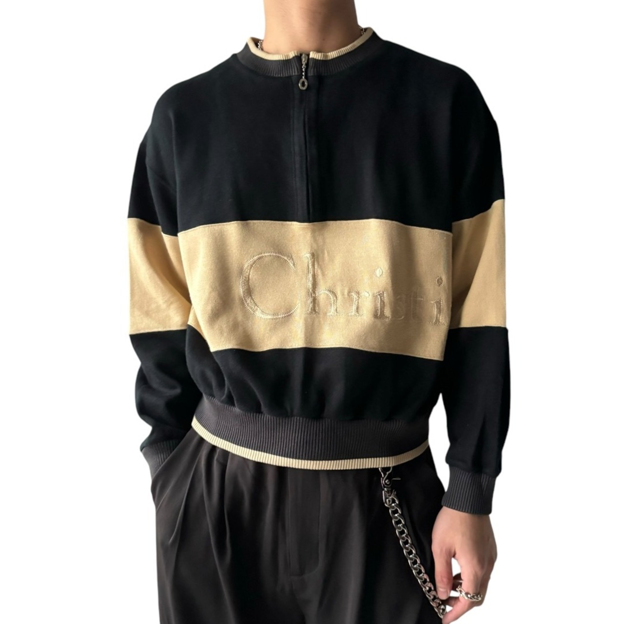 ♾ChristianDior♾ logo embroidery design half zip sweat