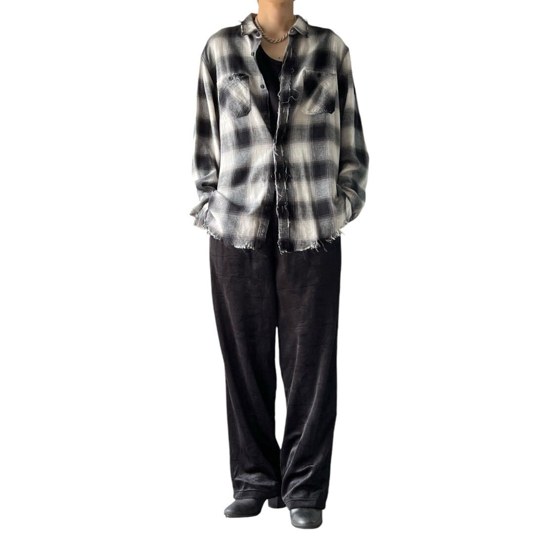 Distressed pattern L/S check shirt