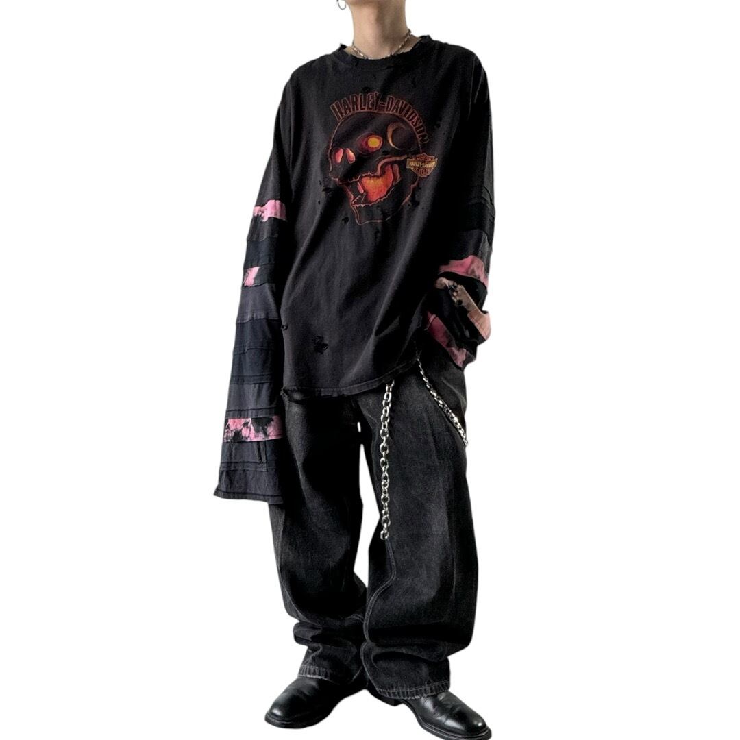 ハーレーTeeの両袖を再構築したリメイクデザインロングスリーブtee‼️