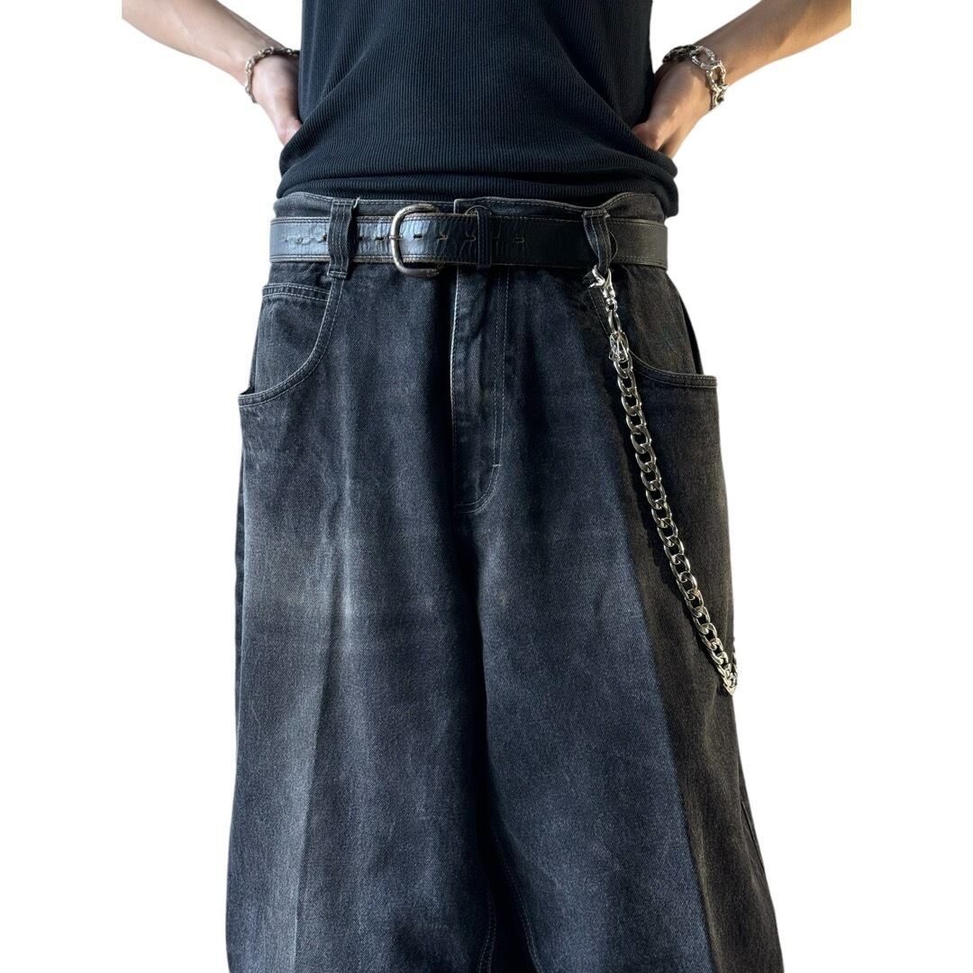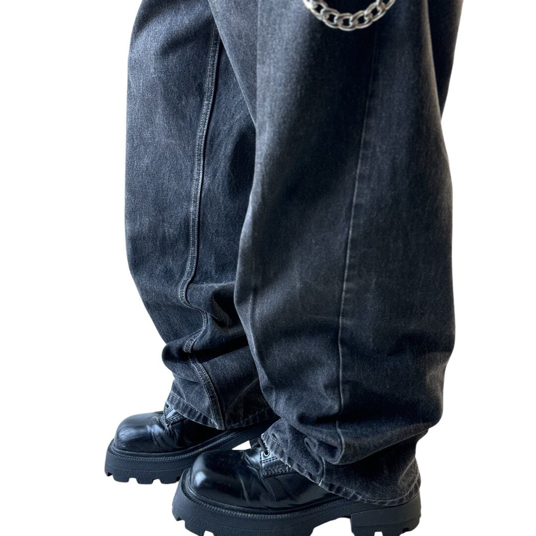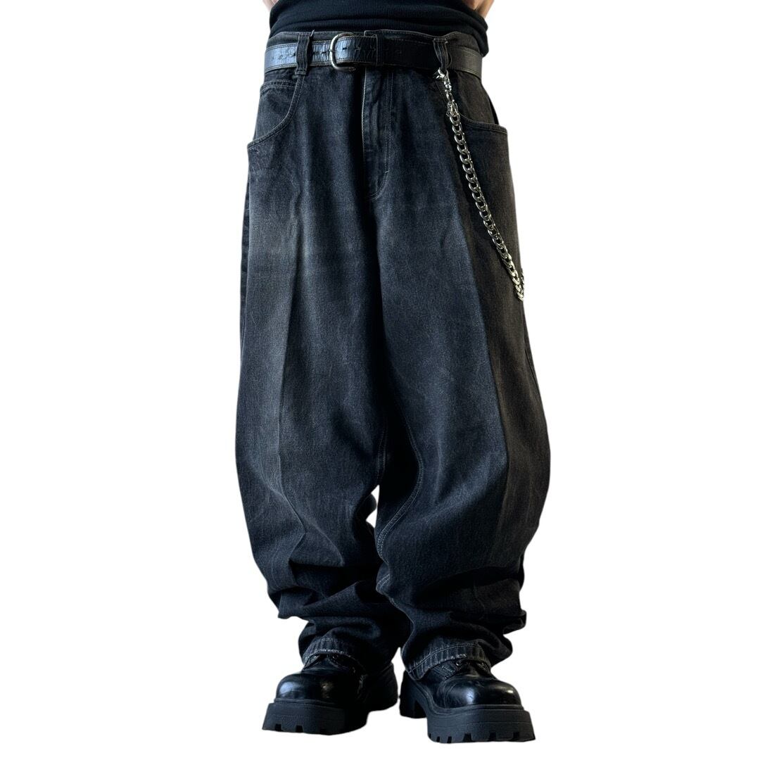 グッドフェードぶっかまなデザインブラックワイドバギーデニムパンツ‼️